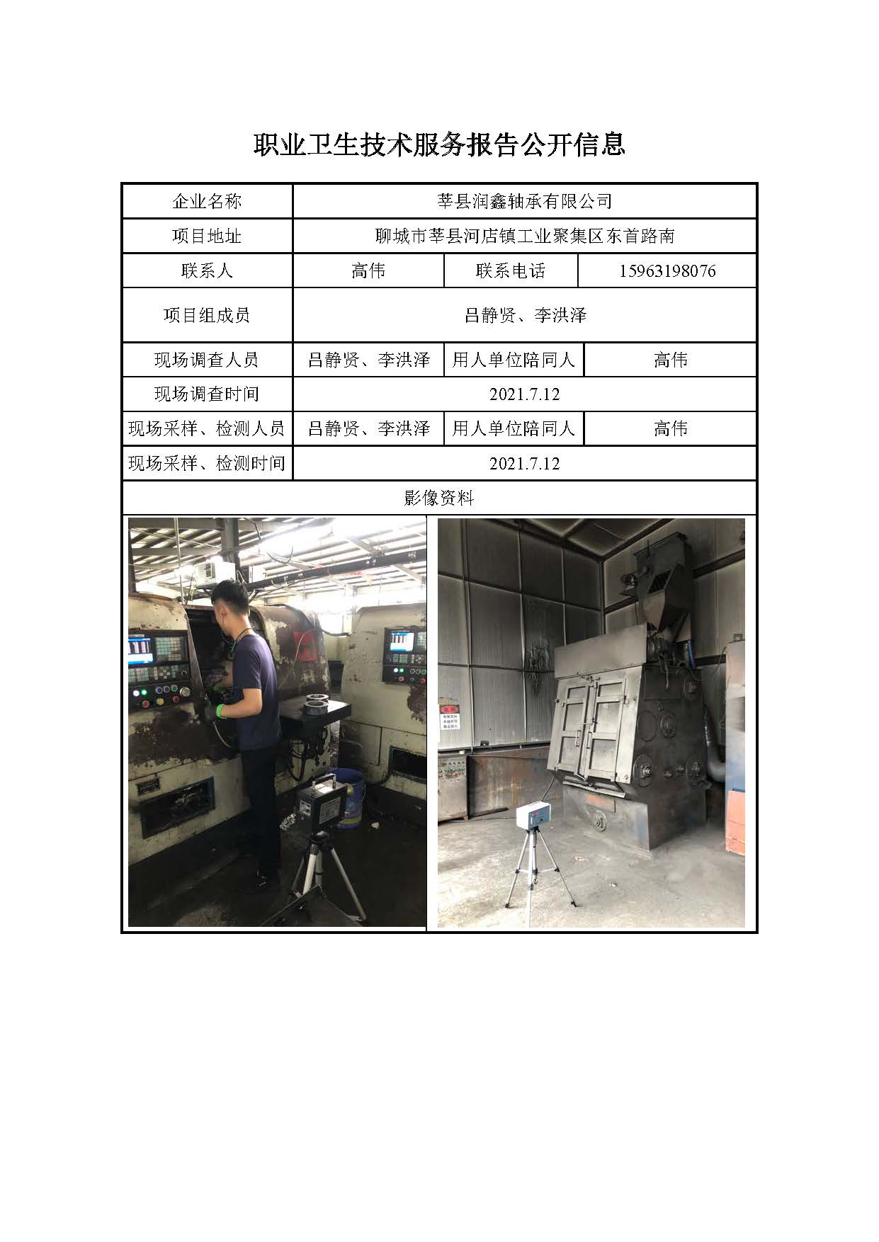 ZBZY21-DQ-081莘县润鑫轴承有限公司 日常检测信息公开