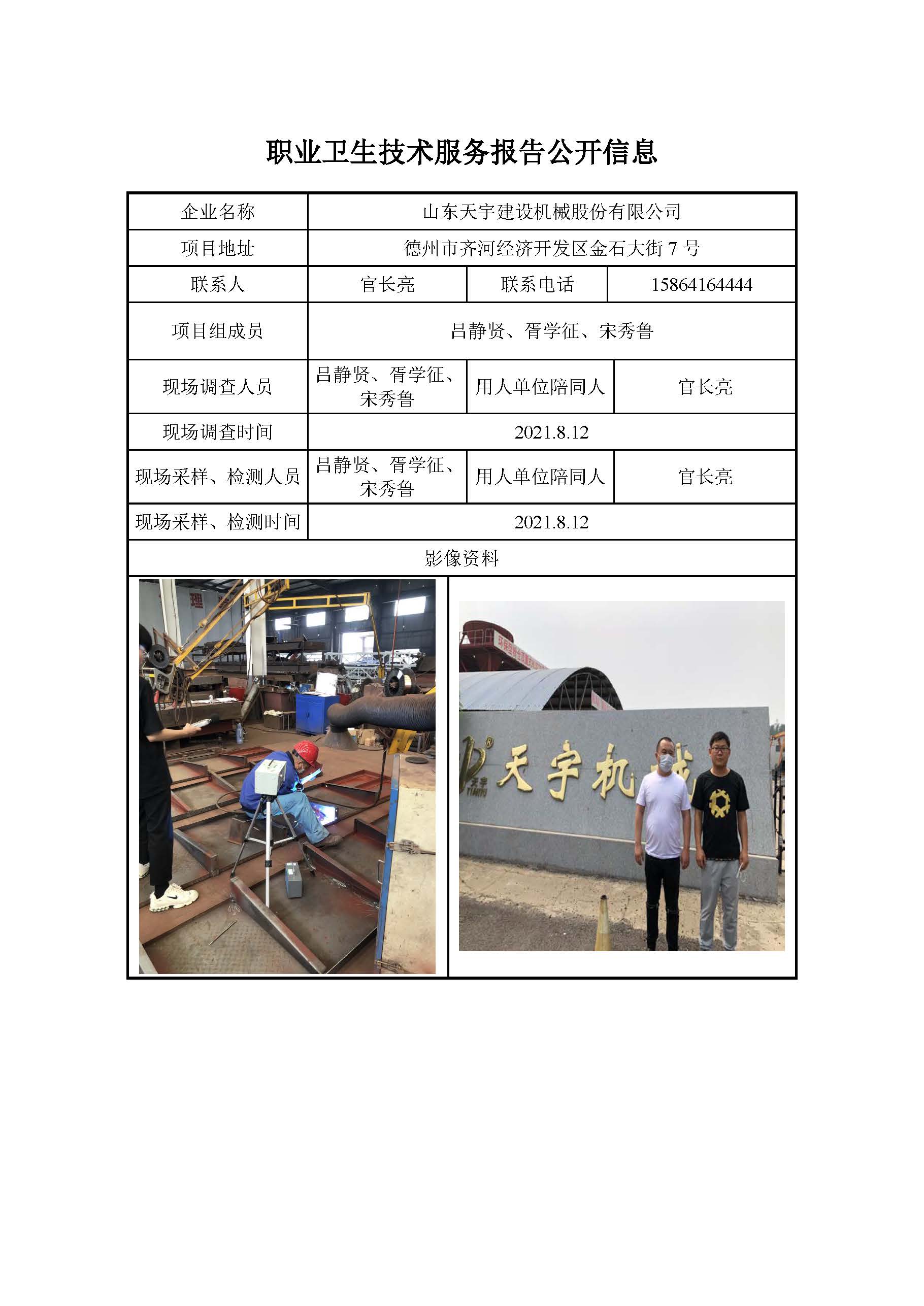 ZBZY21-DQ-101山东天宇建设机械股份有限公司 日常检测信息公开