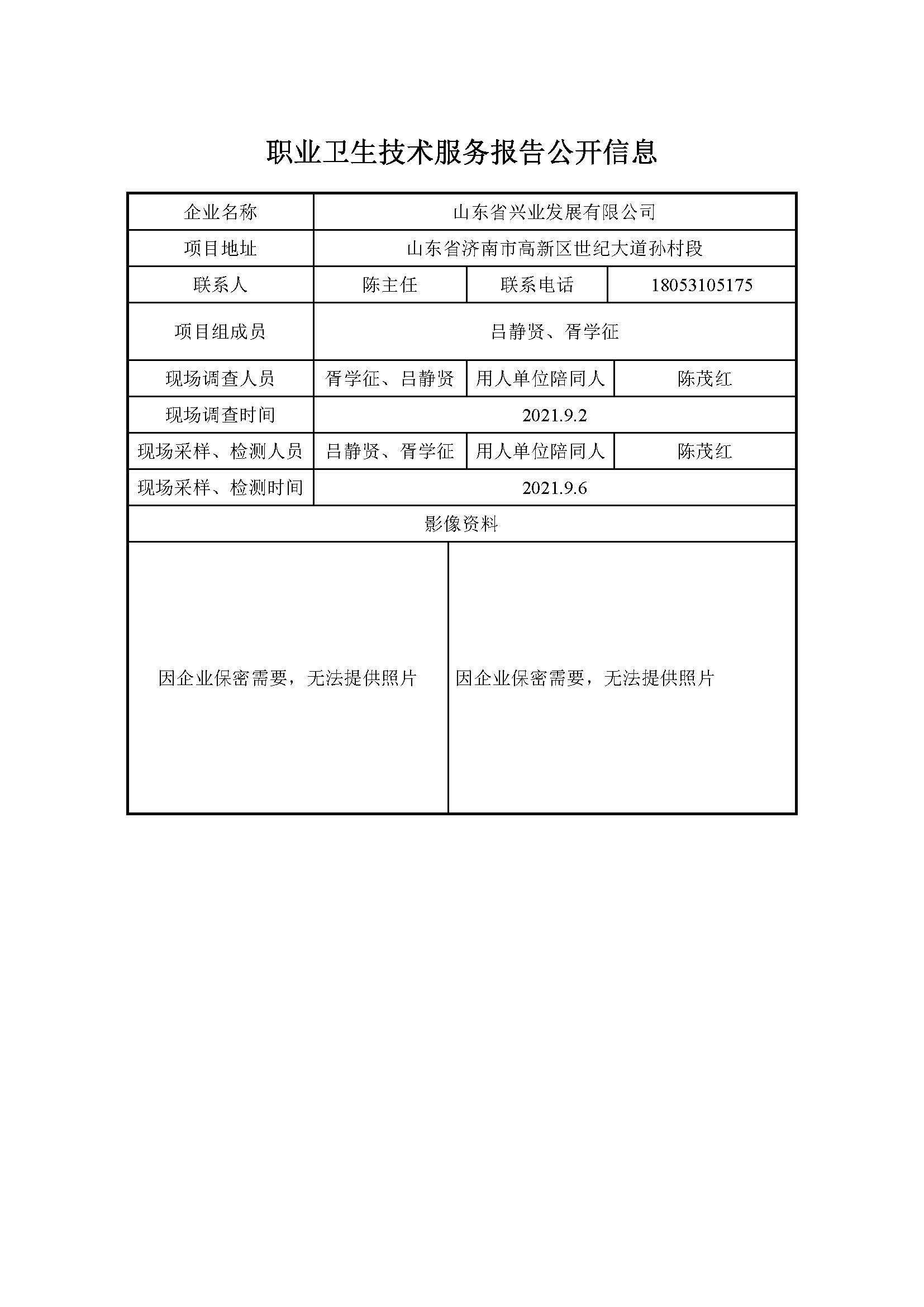 ZBZY21-DQ-113山东省兴业发展有限公司日常检测报告信息公开