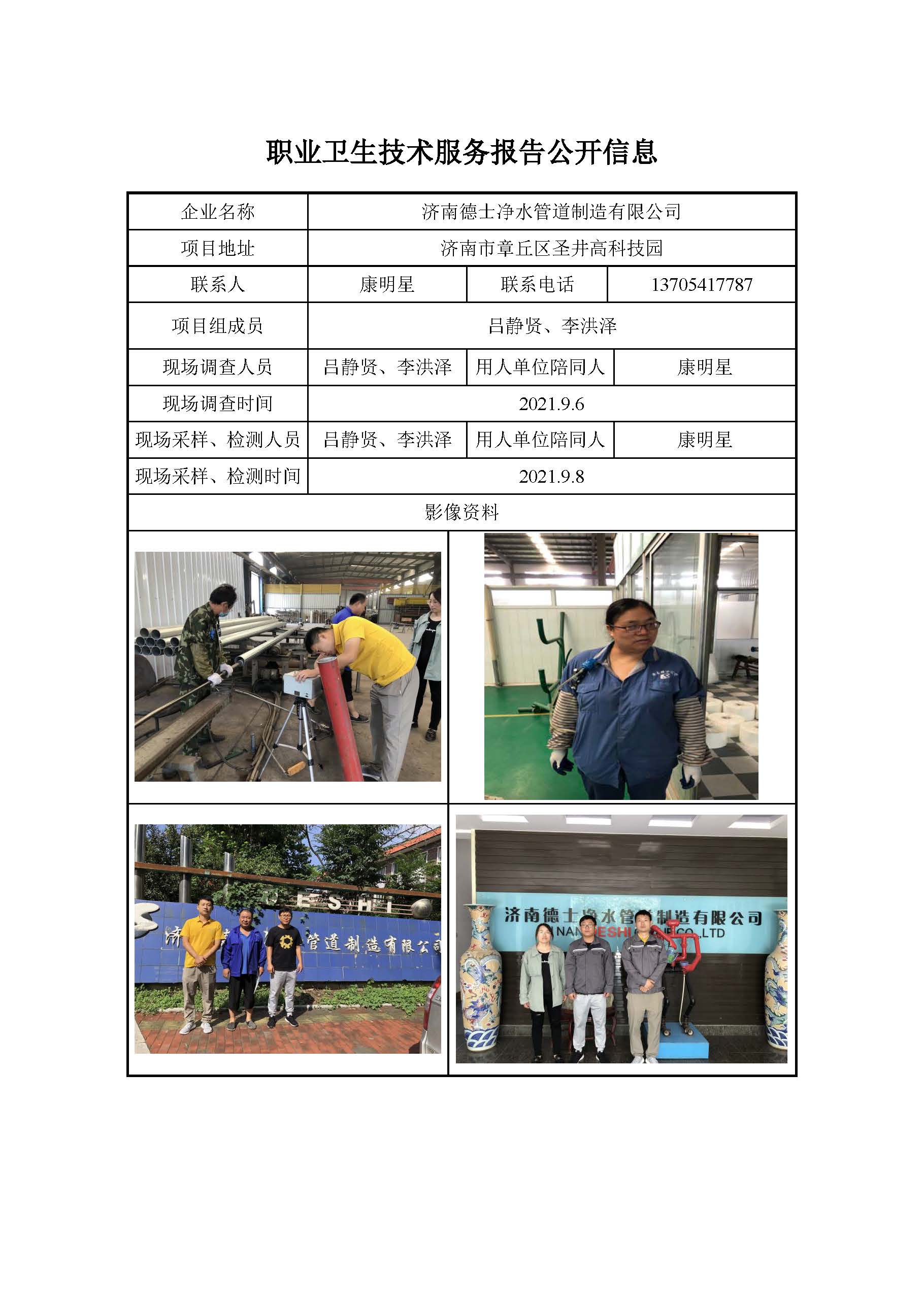 ZBZY21-DQ-117济南德士净水管道制造有限公司 日常检测信息公开