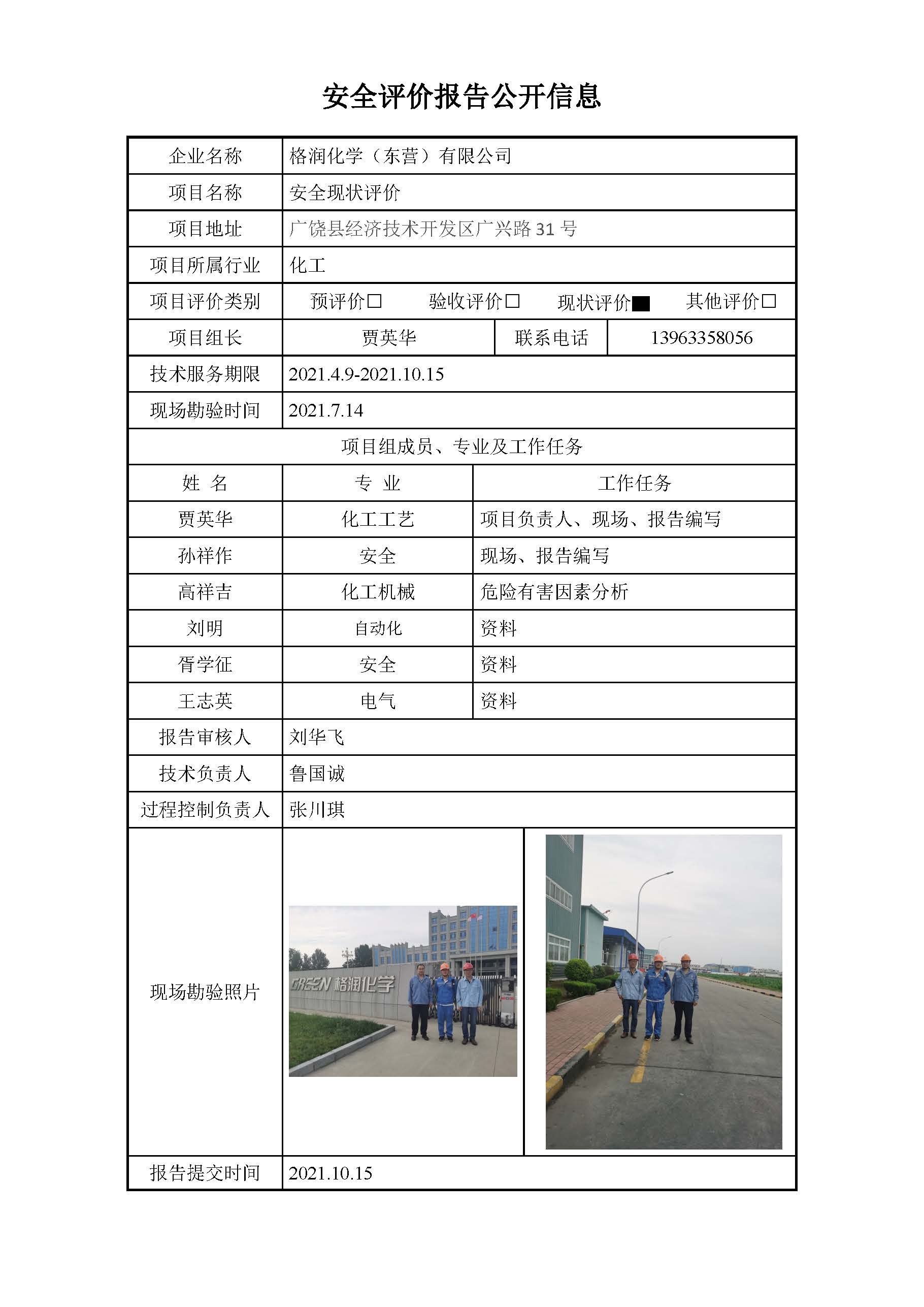 格润化学(东营)有限公司安全现状评价安全评价信息公开