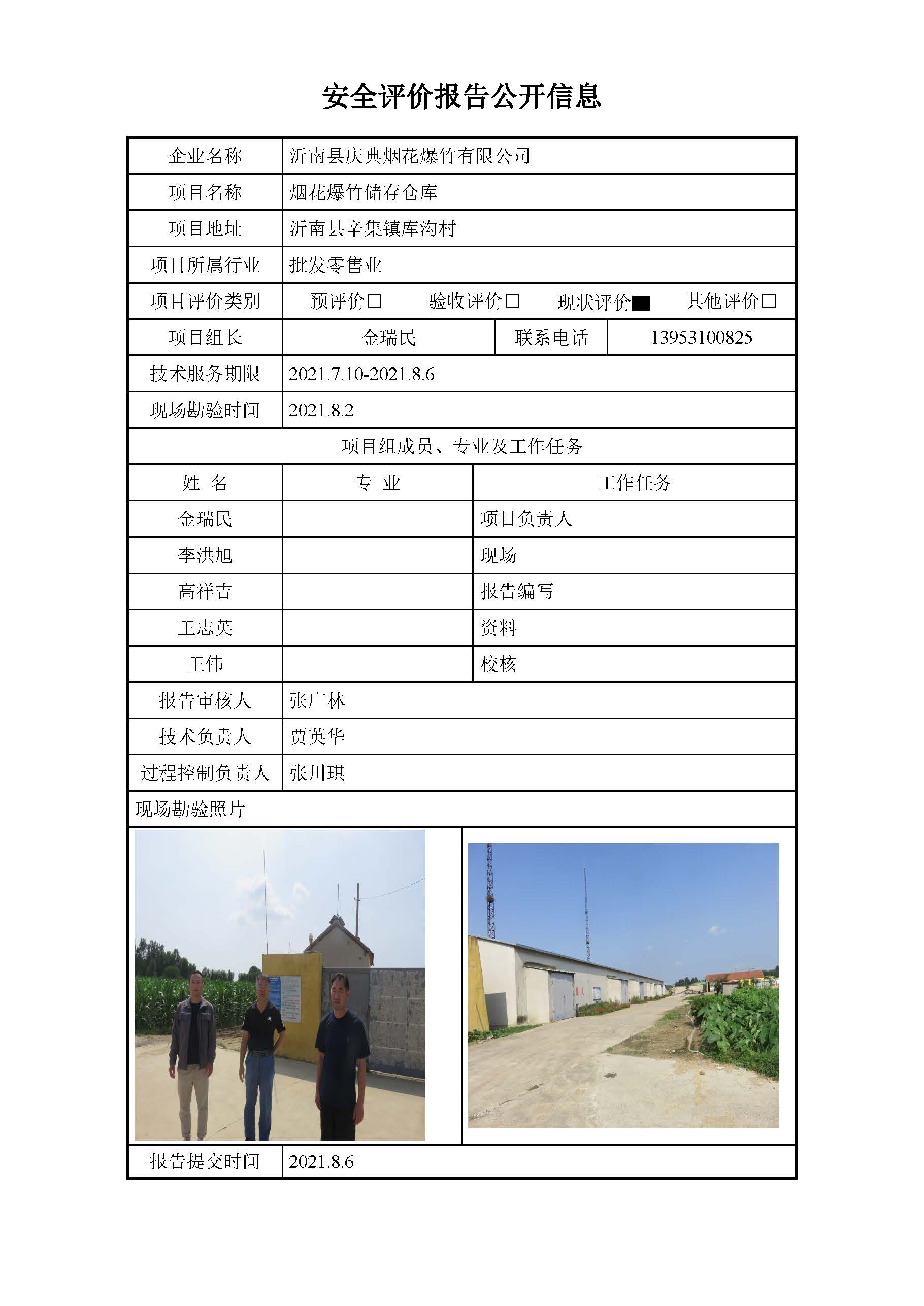 沂南庆典烟花爆竹报告安全评价报告信息公开