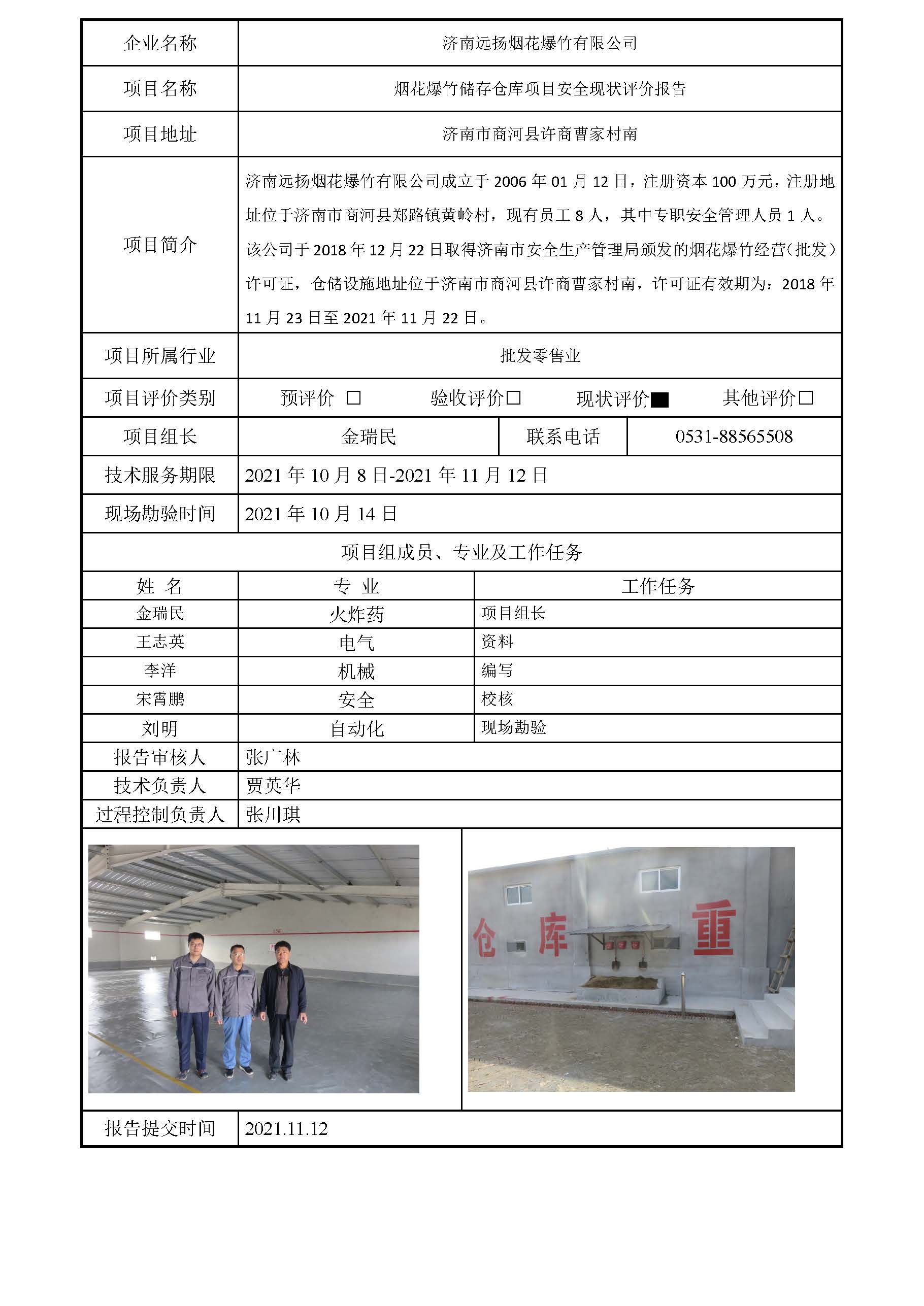 济南远扬烟花爆竹有限公司安全现状评价报告信息公开
