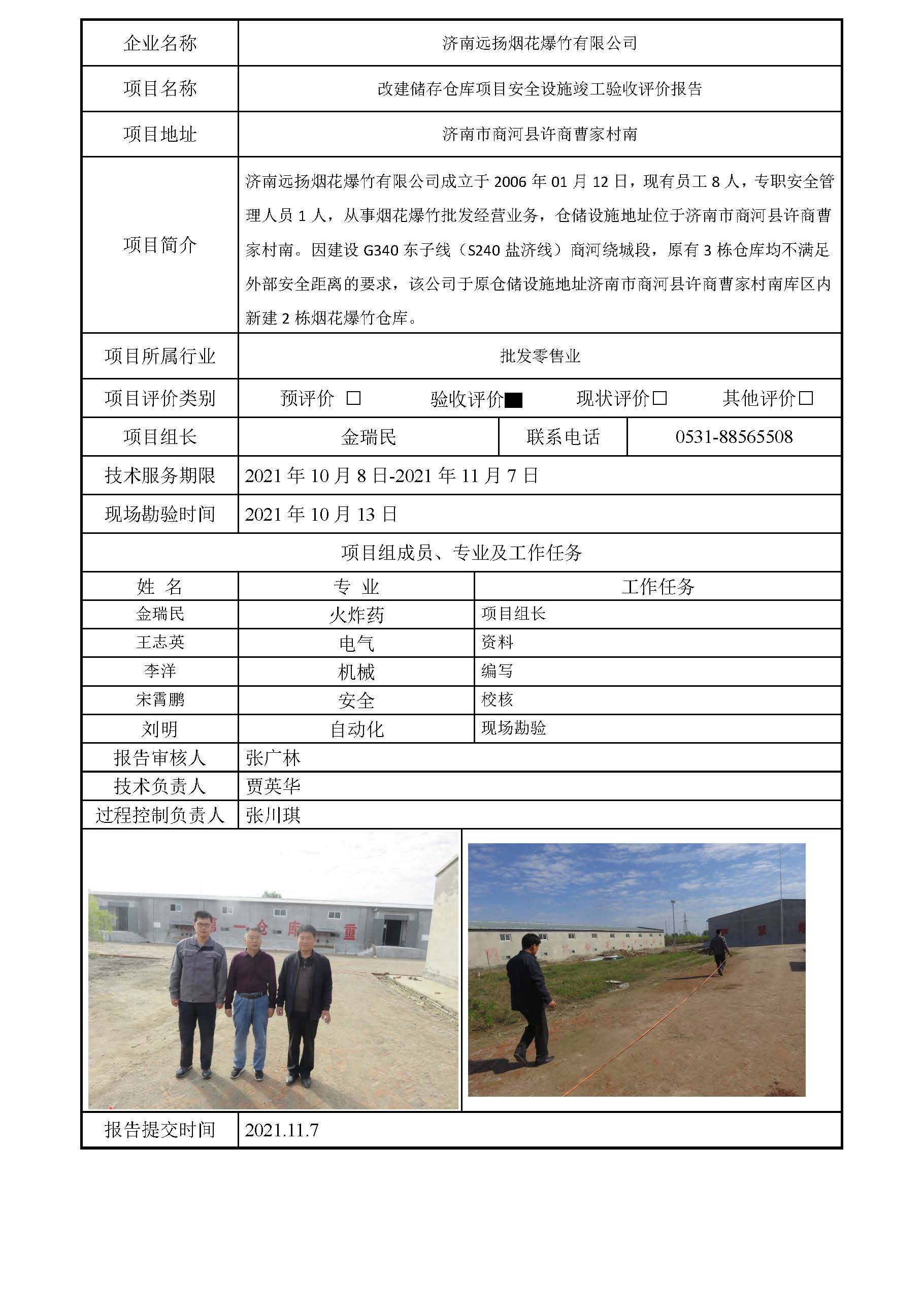 济南远扬烟花爆竹有限公司安全验收评价报告信息公开
