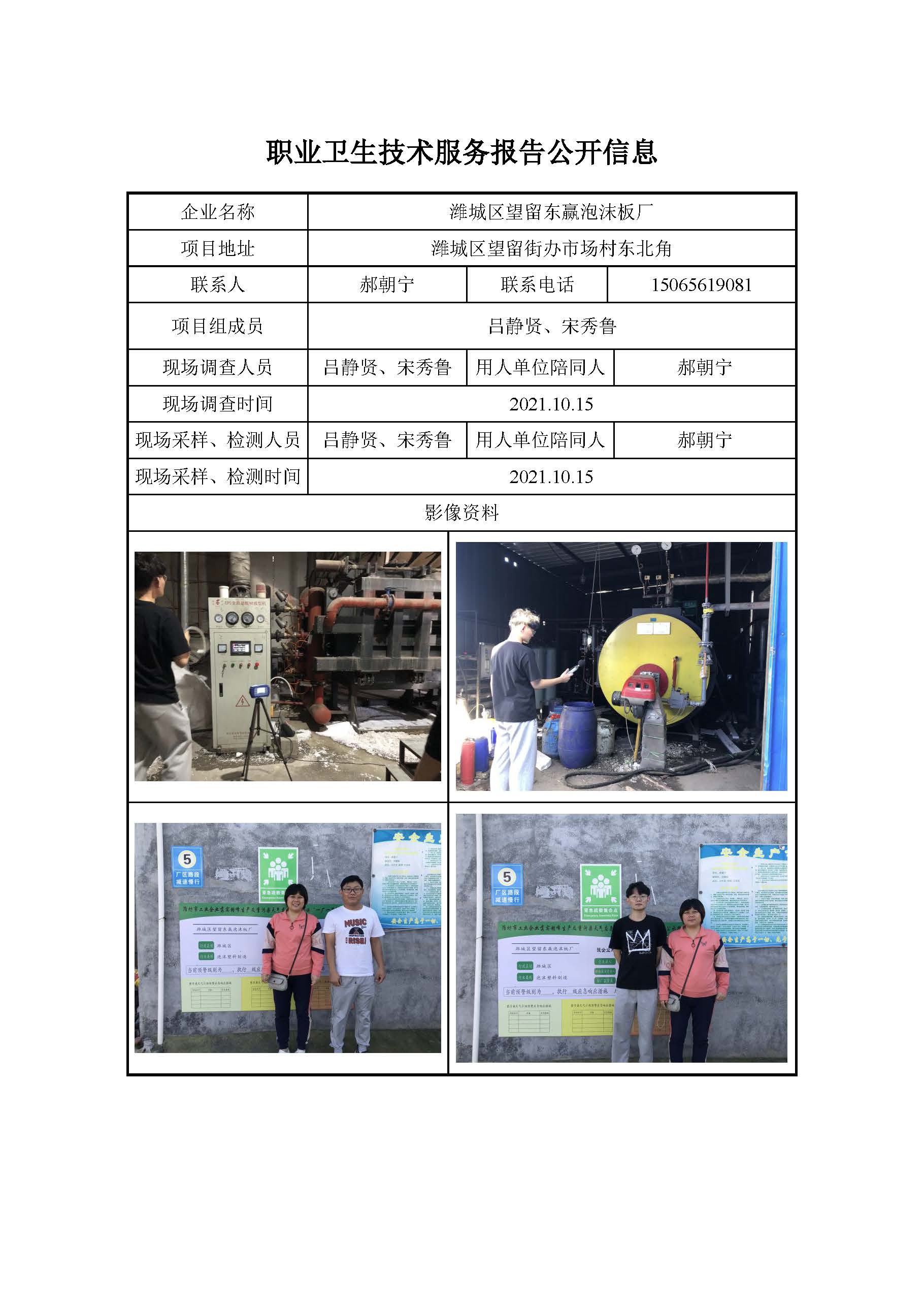 ZBZY21-DQ-152潍城区望留东赢泡沫板厂 日常检测信息公开