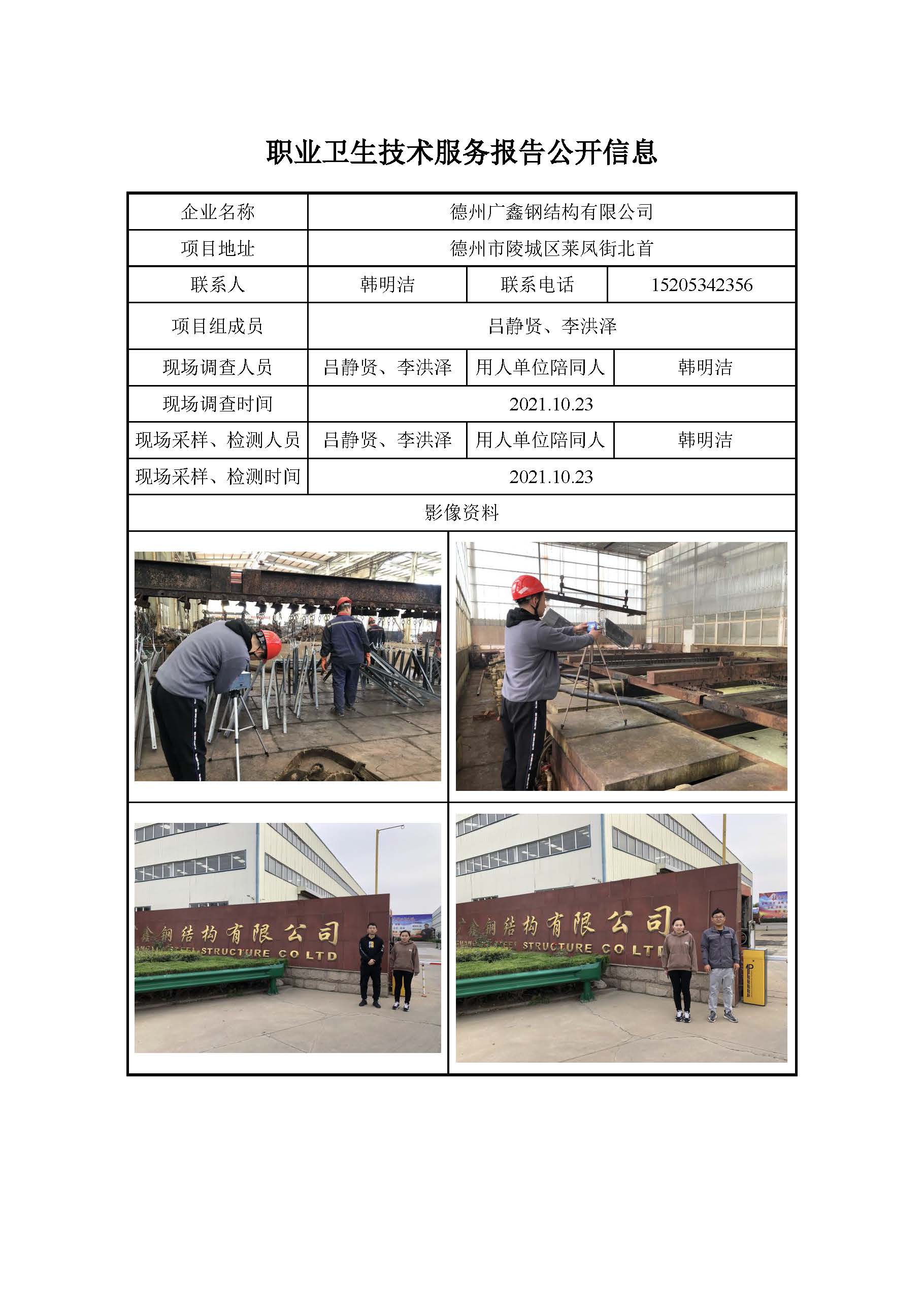 ZBZY21-DQ-155德州广鑫钢结构有限公司 日常检测信息公开
