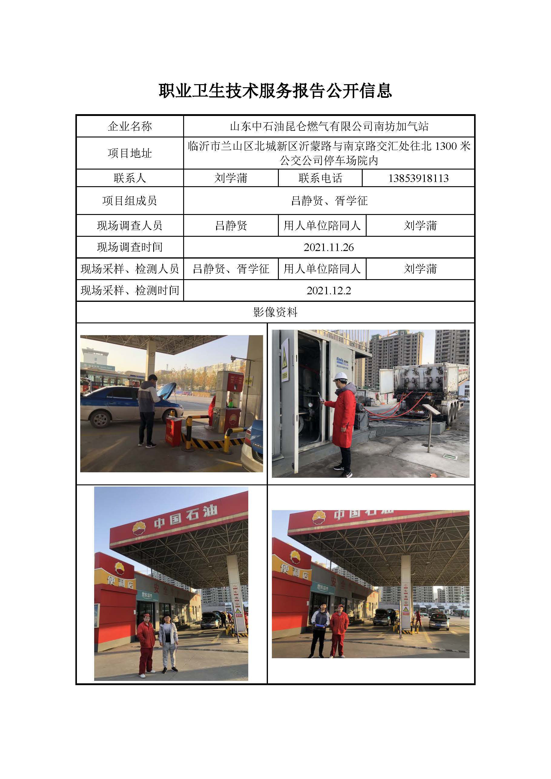 ZBZY21-DQ-167山东中石油昆仑燃气有限公司南坊加气站日常检测信息公开