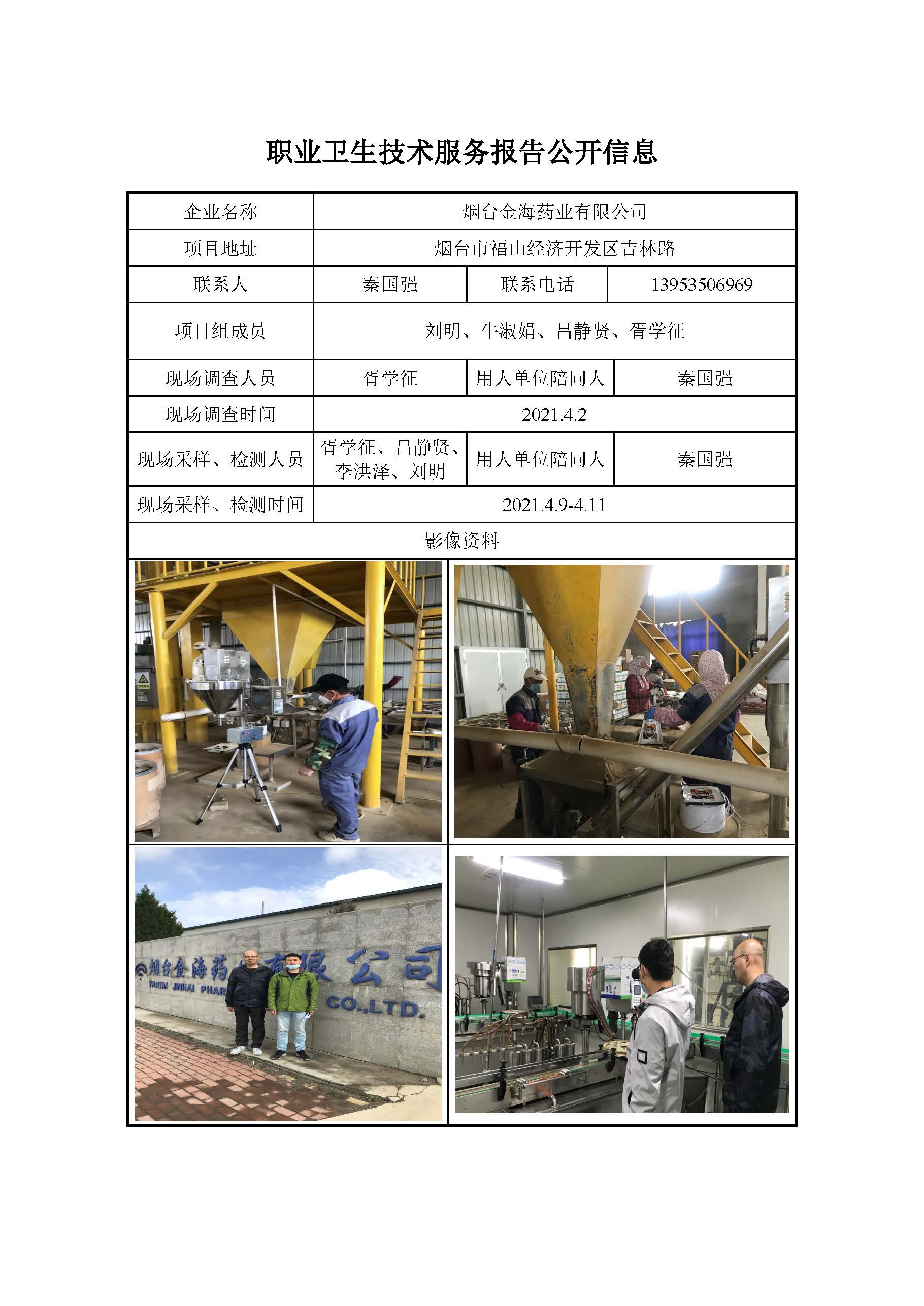 ZBZY21-XP-015烟台金海药业有限公司现状评价报告信息公开
