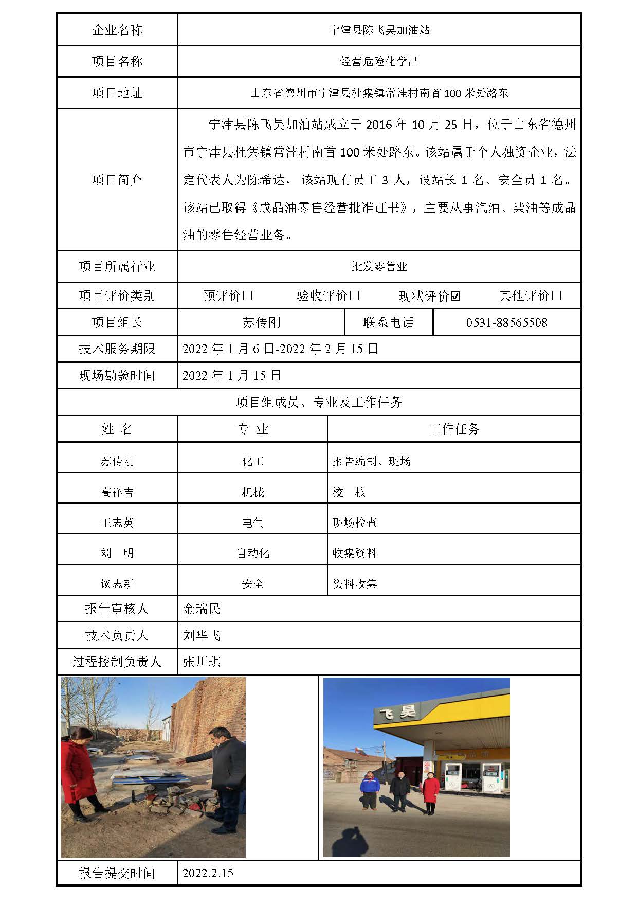 安全评价报告信息公开表(宁津县陈飞昊加油站)