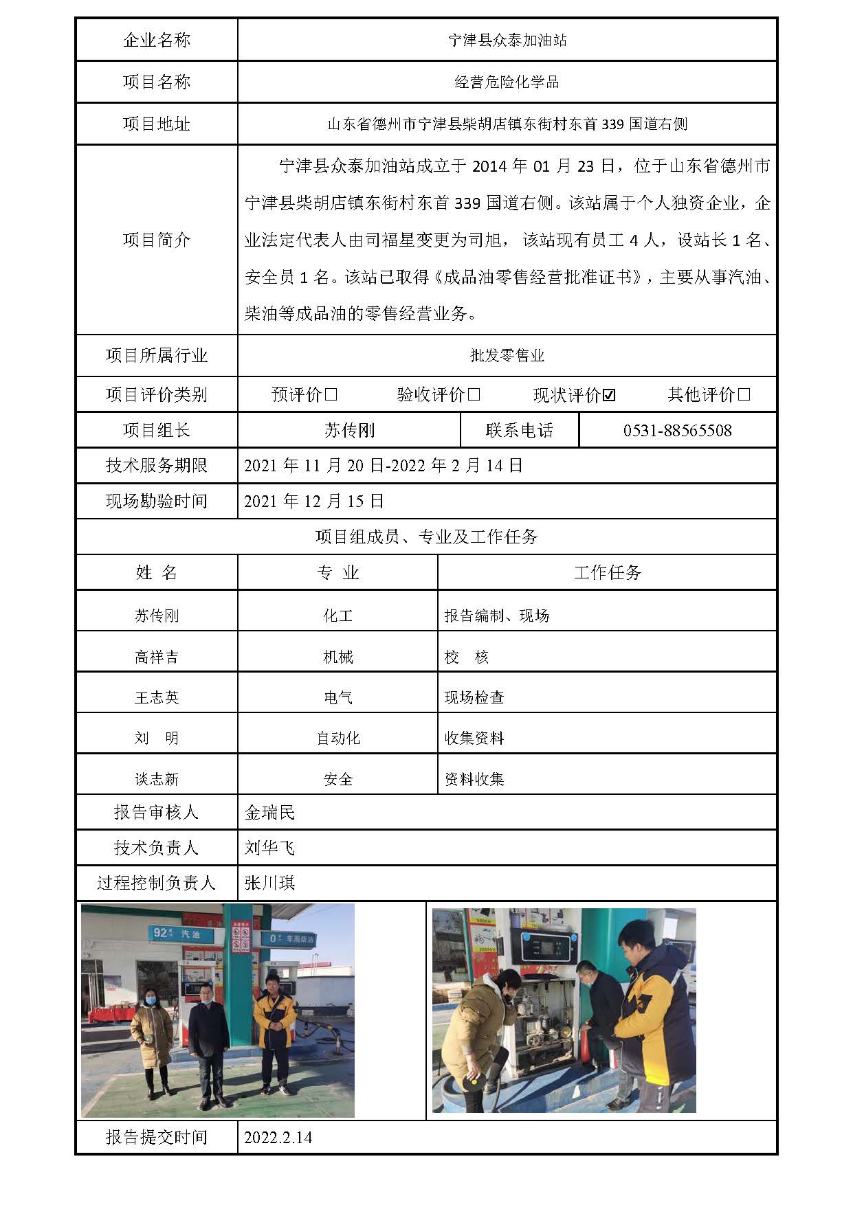 安全评价报告信息公开表(宁津县众泰加油站)