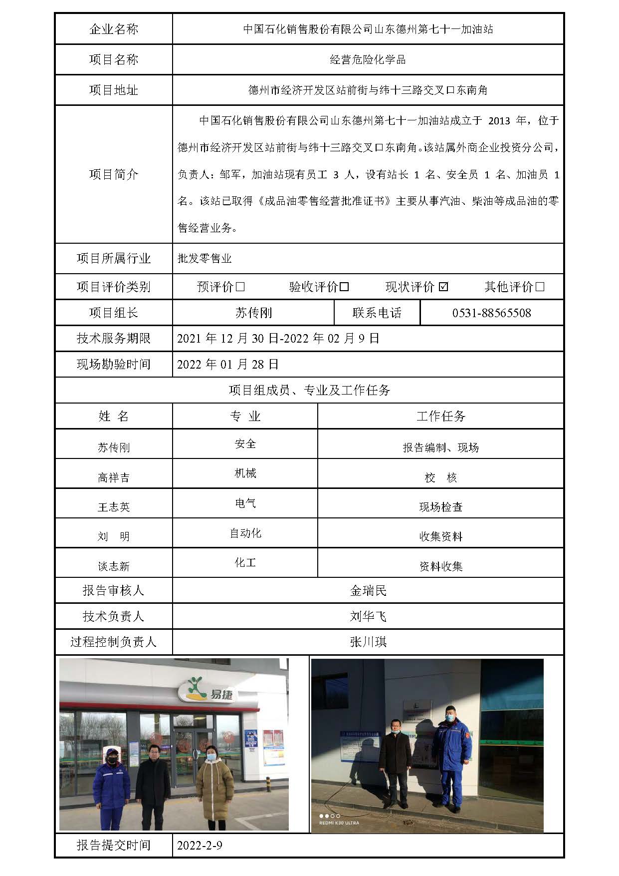 中国石化销售股份有限公司山东德州第七十一加油站信息公开表