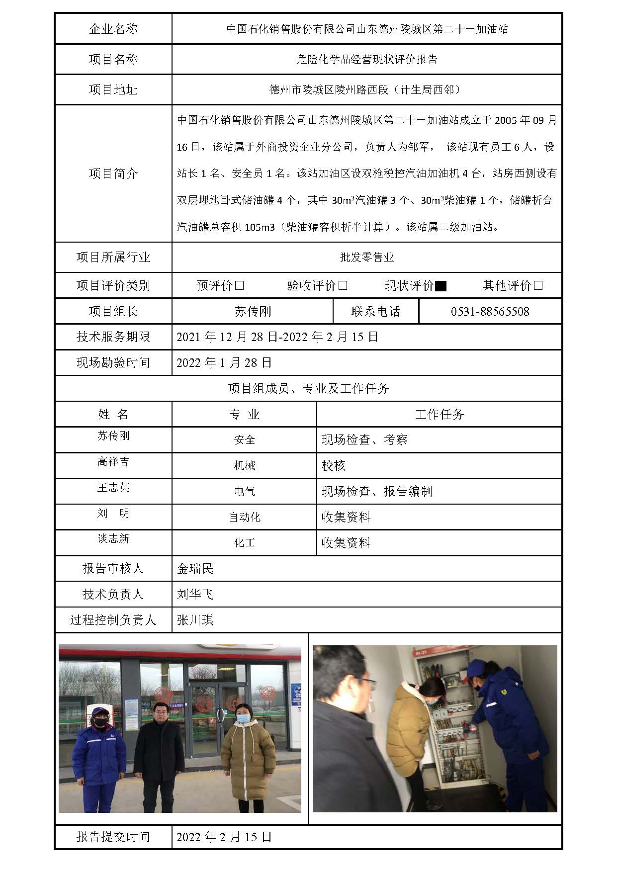 中国石化销售股份有限公司山东德州陵城区第二十一加油站信息公开表