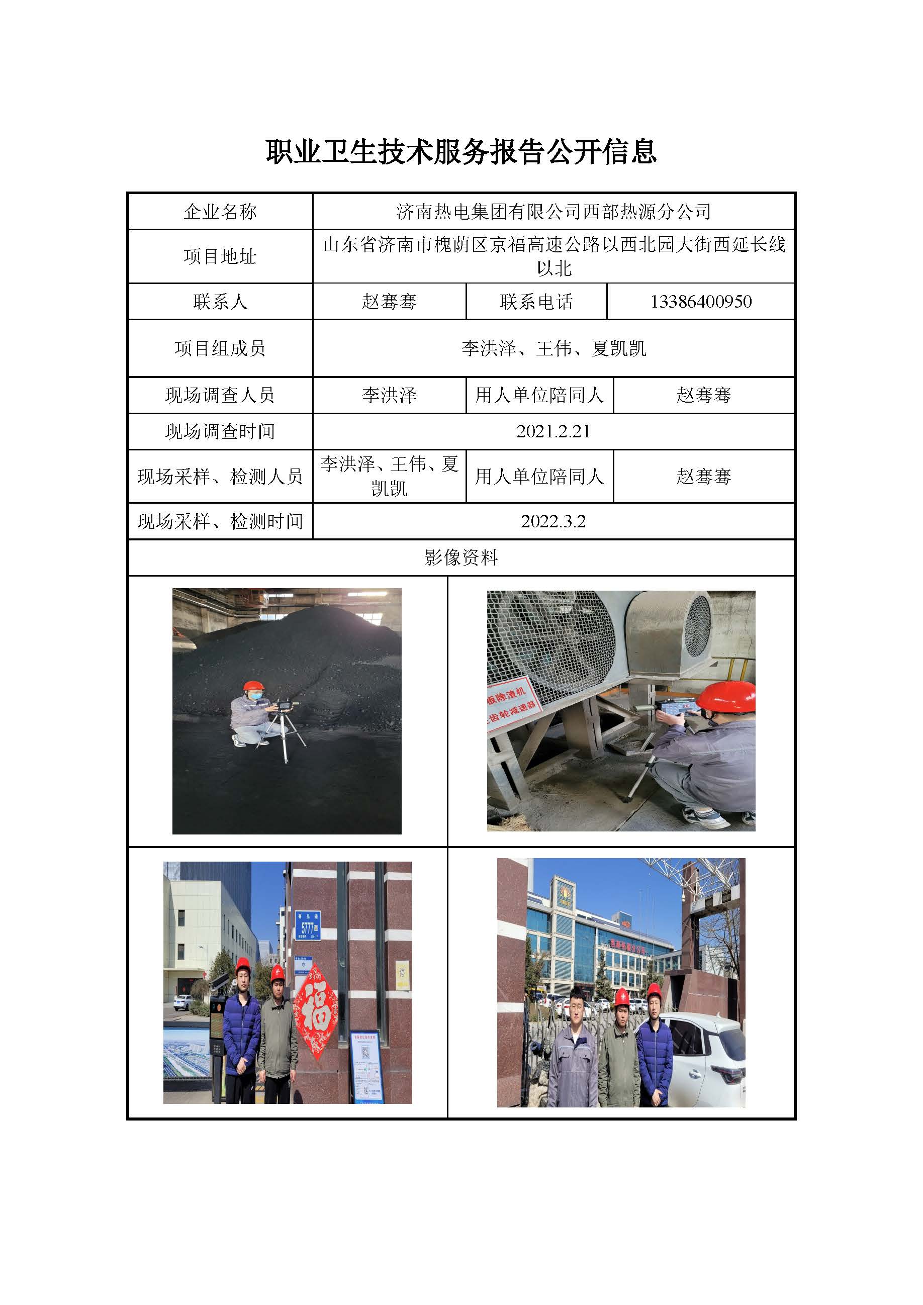 ZBZY22-DQ-006 济南热电集团有限公司西部热源分公司职业病危害因素定期检测