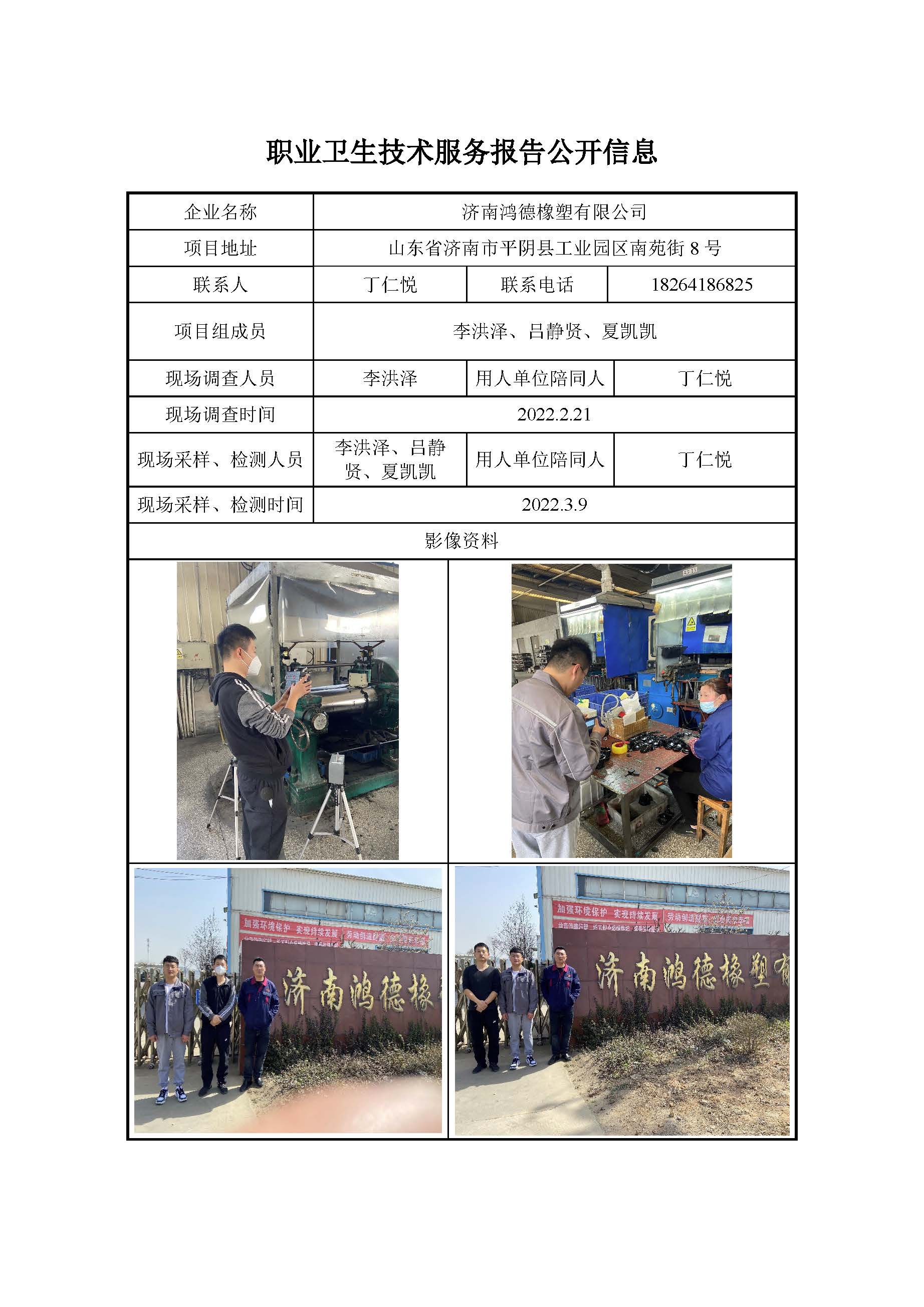 ZBZY22-DQ-009济南鸿德橡塑有限公司职业病危害因素定期检测