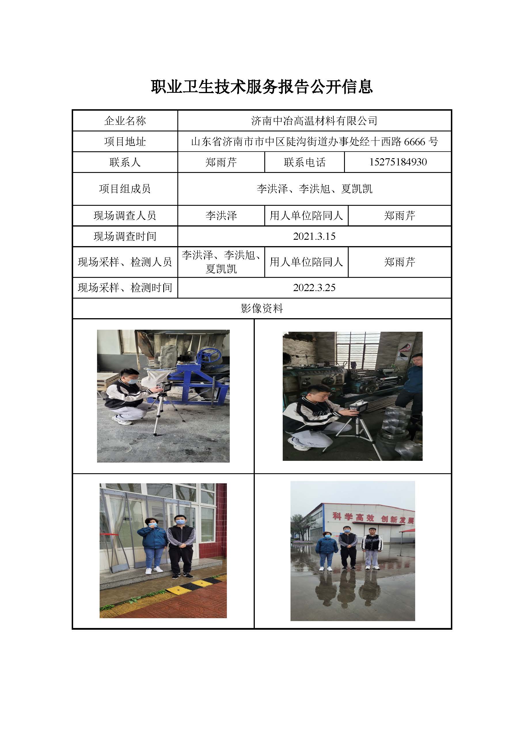 ZBZY22-DQ-012济南中冶高温材料有限公司职业病危害因素定期检测公开信息