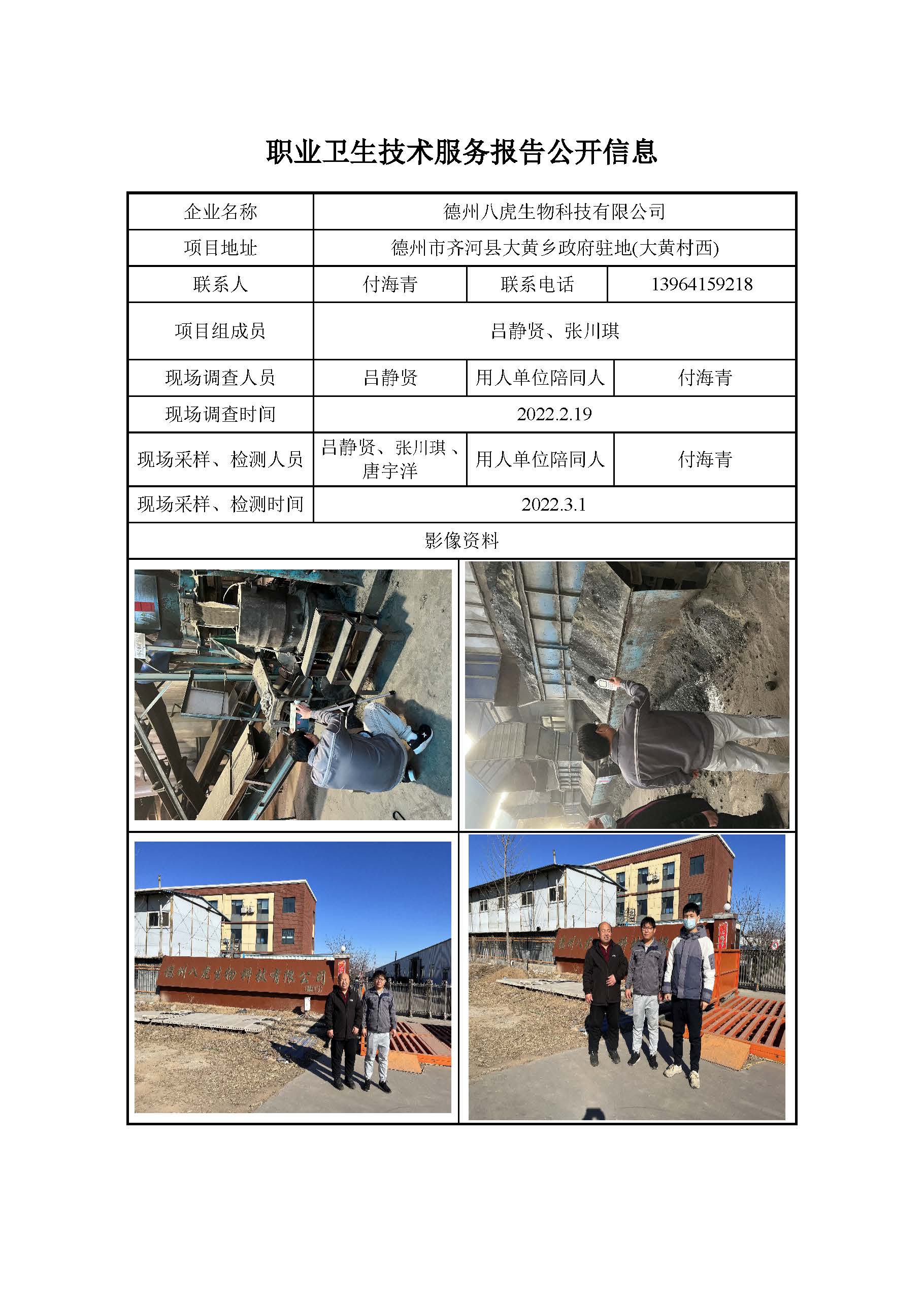ZBZY22-DQ-007德州八虎生物科技有限公司 定期检测信息公开