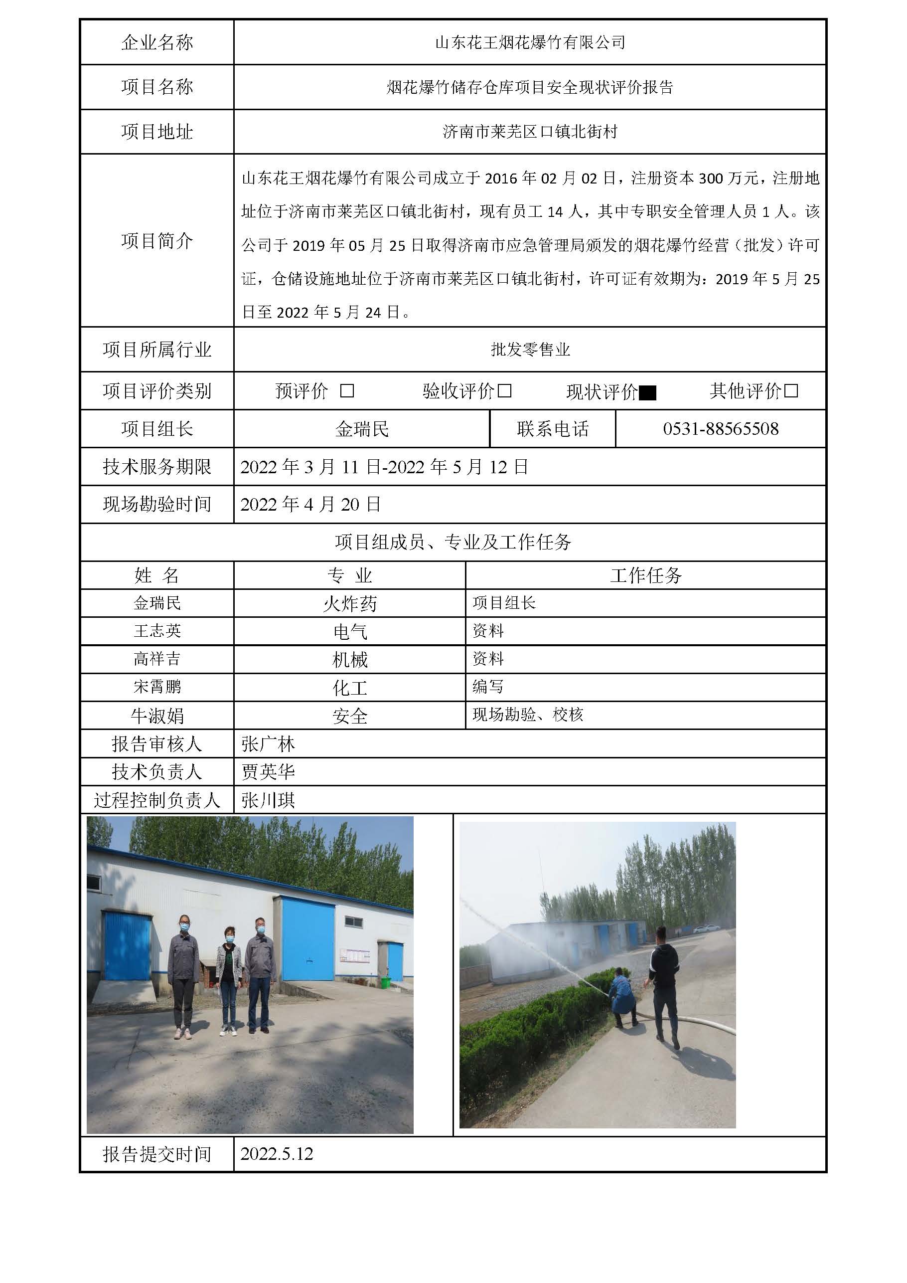 山东花王烟花爆竹有限公司安全现状评价报告信息公开