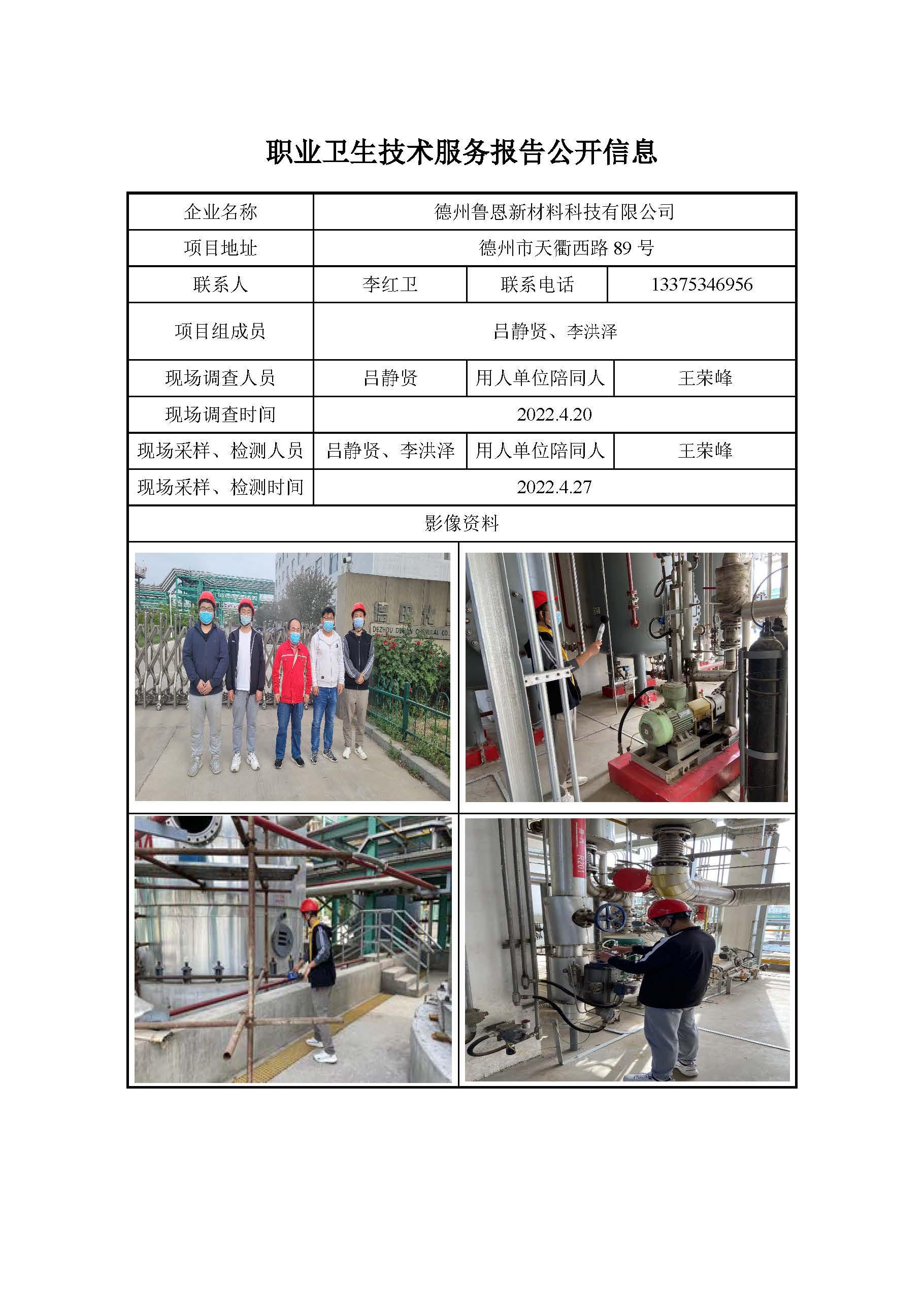 ZBZY22-DQ-017德州鲁恩新材料科技有限公司定期检测信息公开