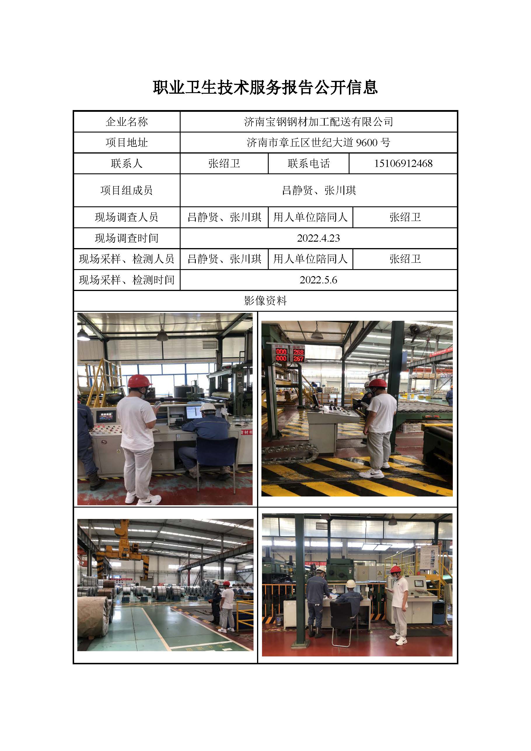 ZBZY22-DQ-016济南宝钢钢材加工配送有限公司 定期检测信息公开