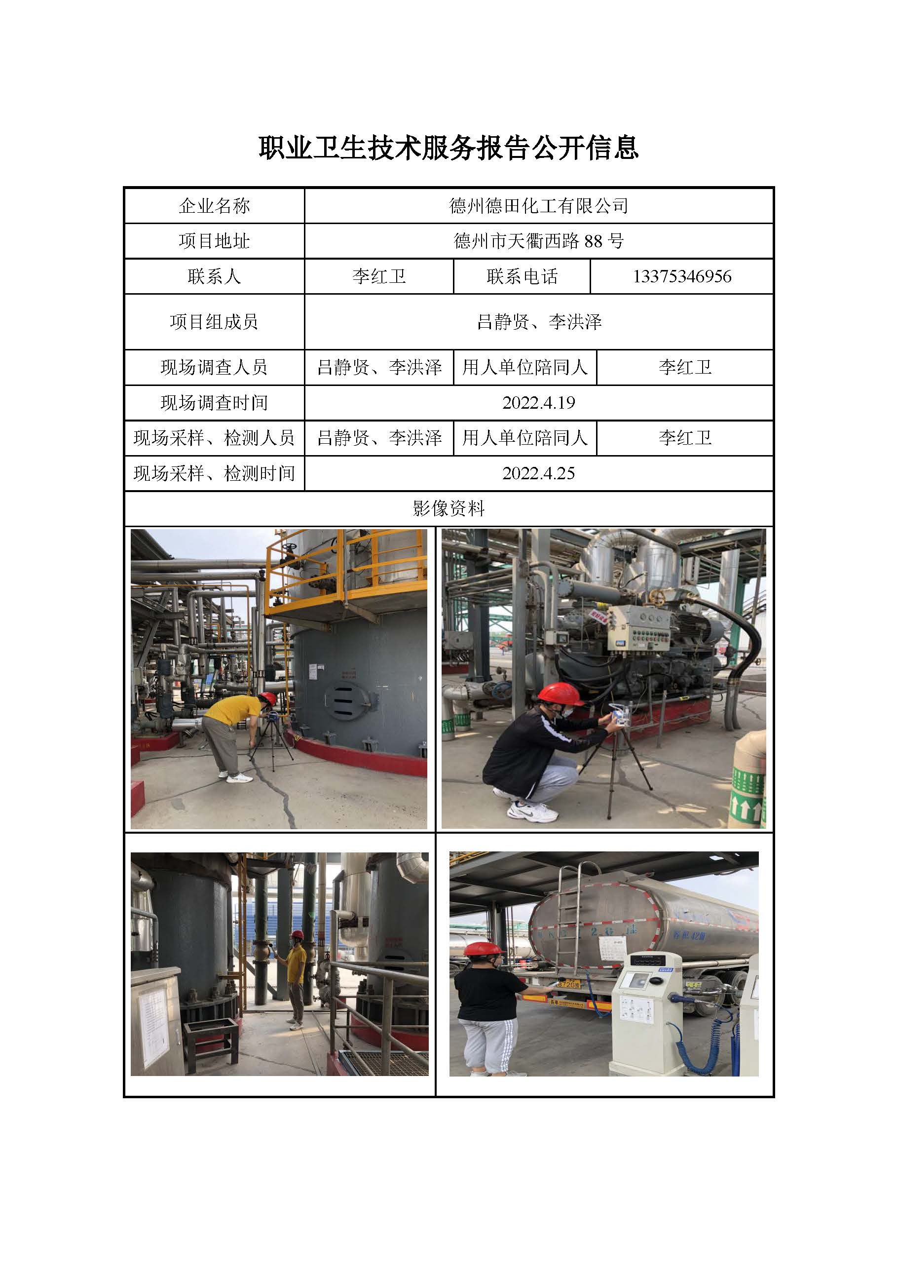 ZBZY22-DQ-019德州德田化工有限公司 定期检测信息公开