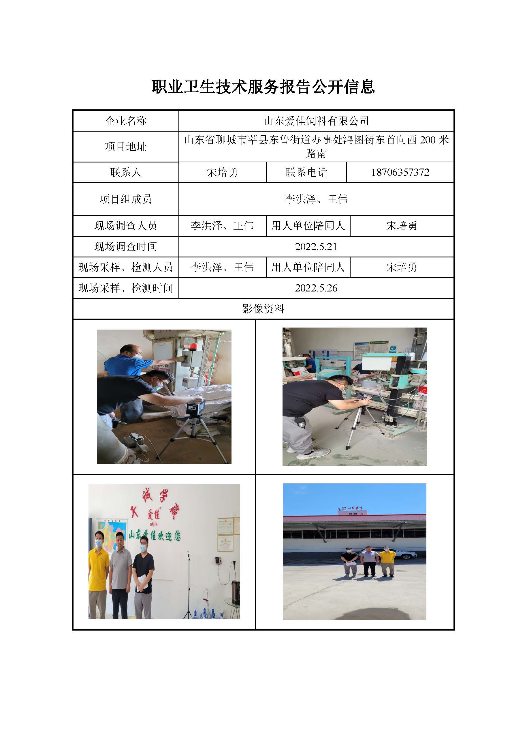ZBZY22-DQ-027山东爱佳饲料有限公司职业病危害因素定期检测公开信息