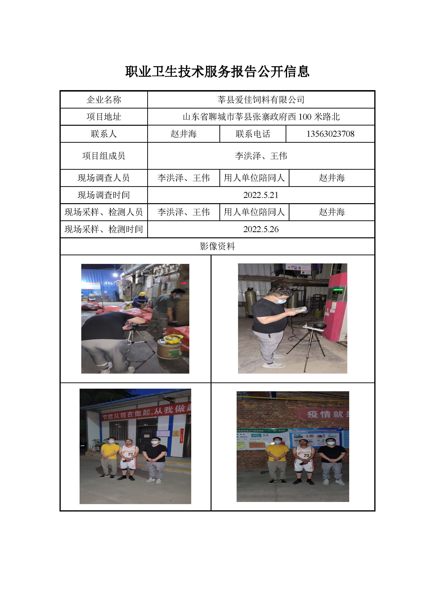 ZBZY22-DQ-029莘县爱佳饲料有限公司职业病危害因素定期检测公开信息