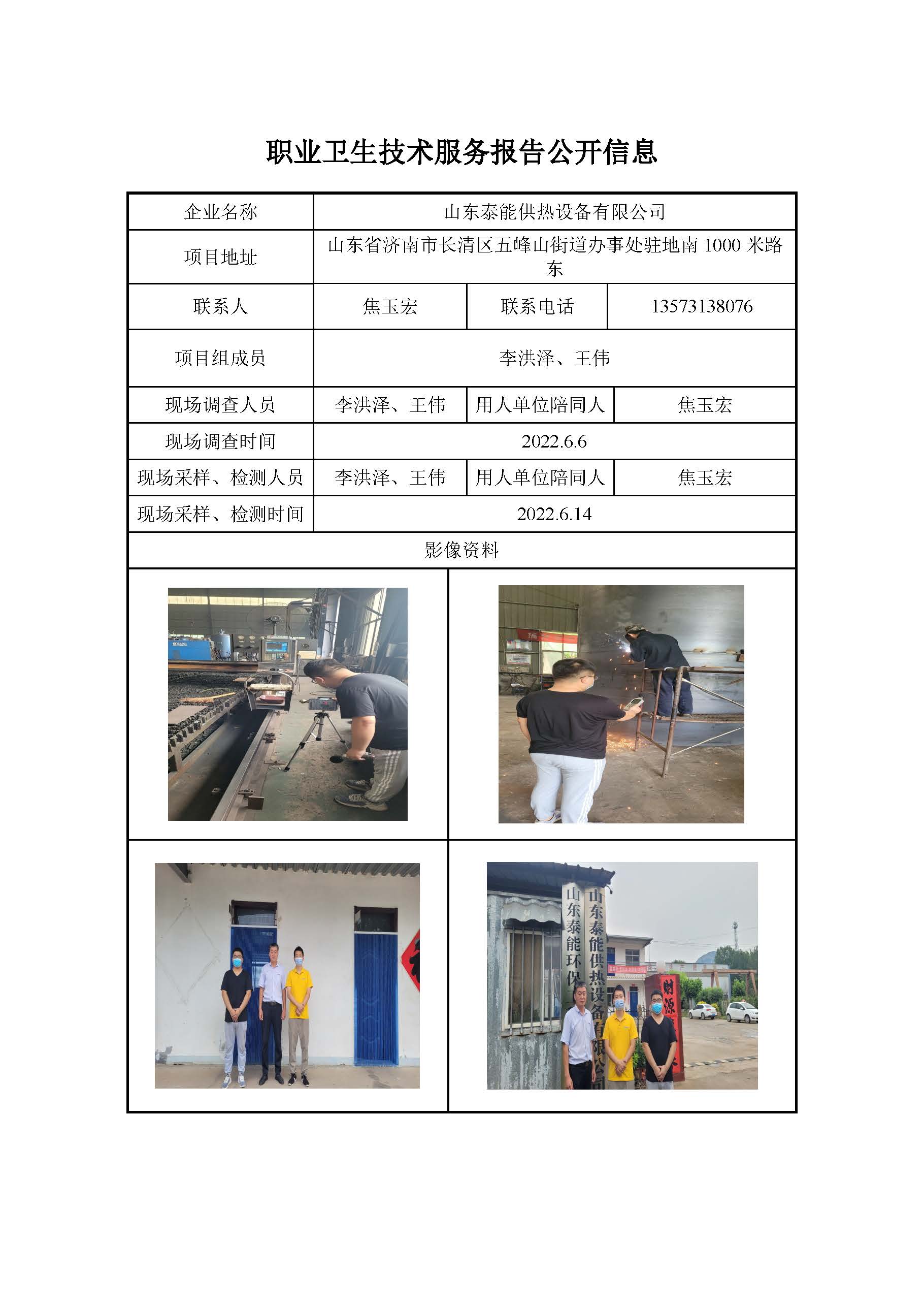 ZBZY22-DQ-036山东泰能供热设备有限公司职业病危害因素定期检测公开信息