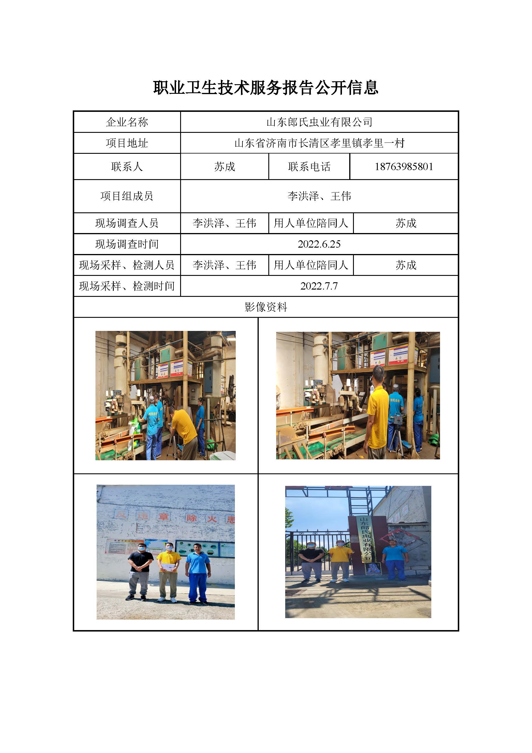 ZBZY22-DQ-039山东郎氏虫业有限公司职业病危害因素定期检测公开信息