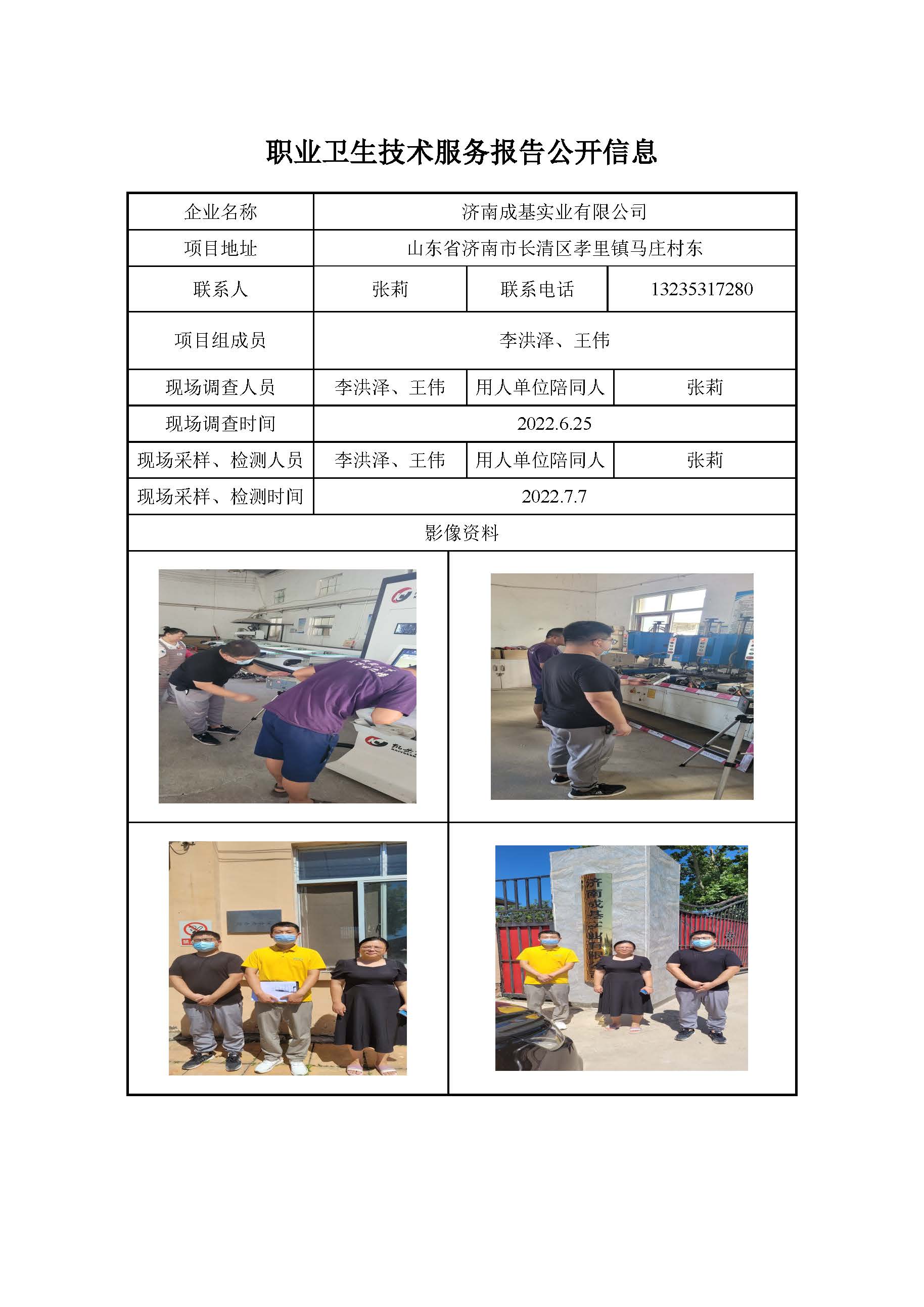 ZBZY22-DQ-040济南成基实业有限公司职业病危害因素定期检测公开信息