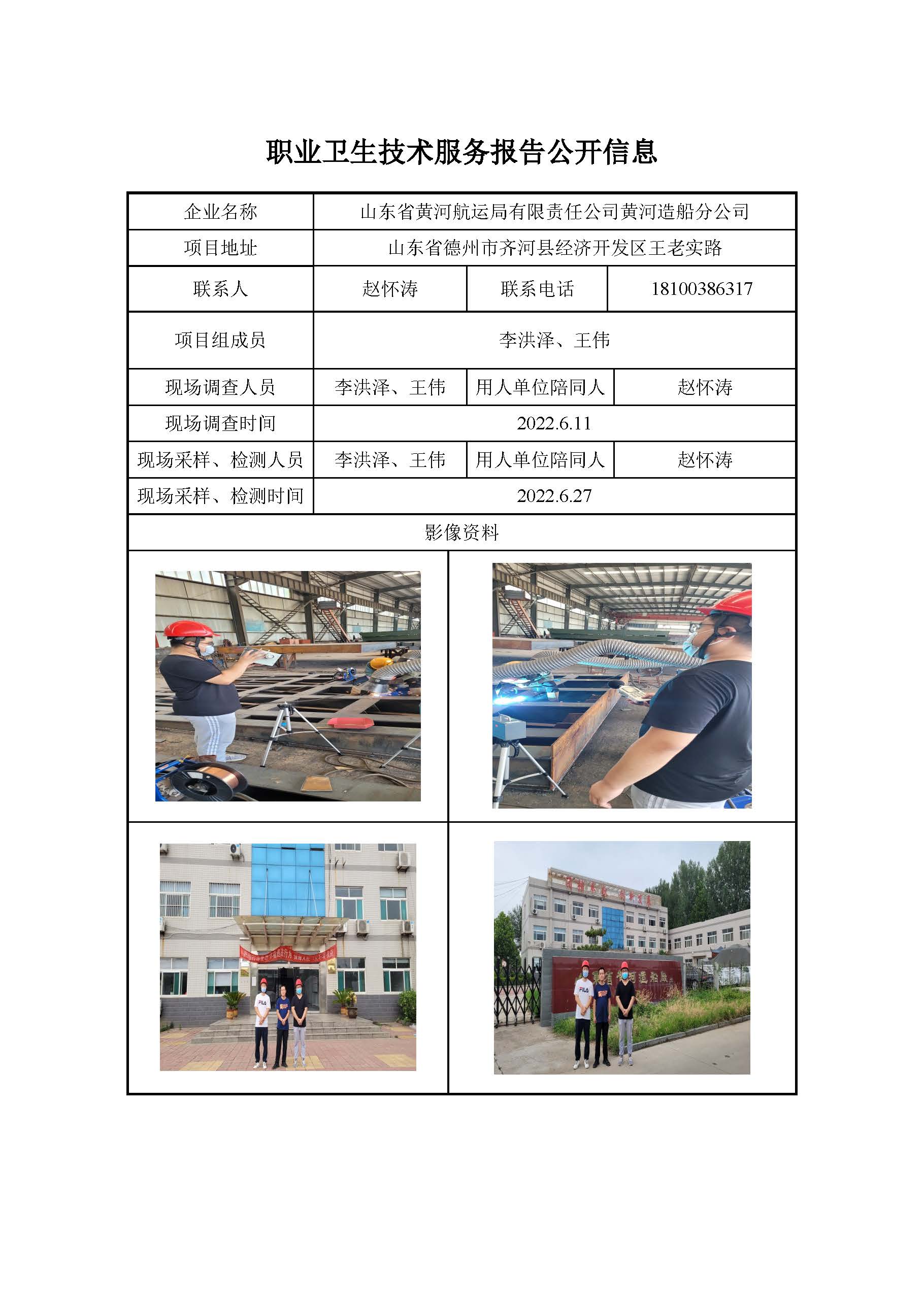 ZBZY22-DQ-041山东省黄河航运局有限责任公司黄河造船分公司职业病危害因素定期检测公开信息