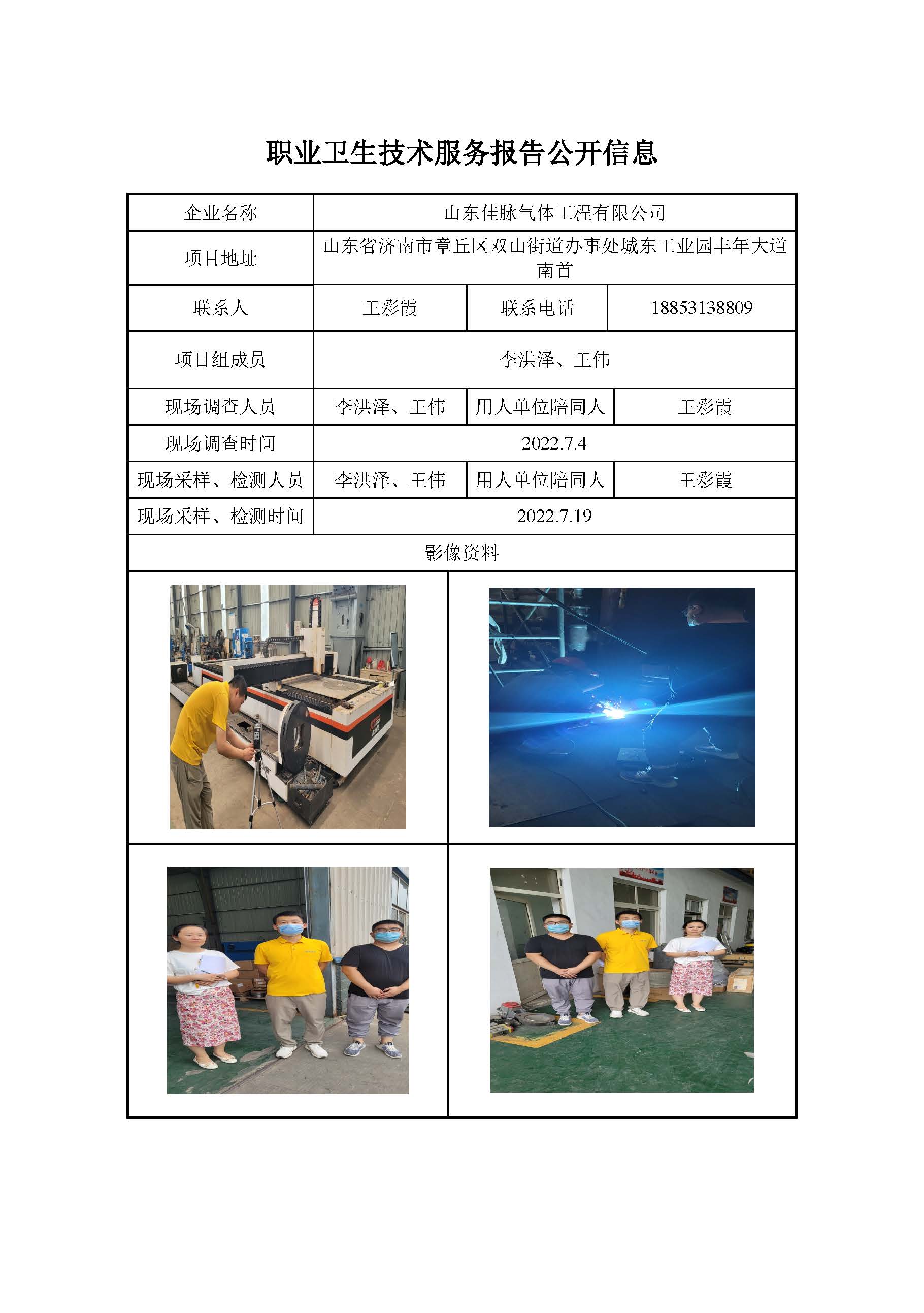 ZBZY22-DQ-045山东佳脉气体工程有限公司职业病危害因素定期检测公开信息