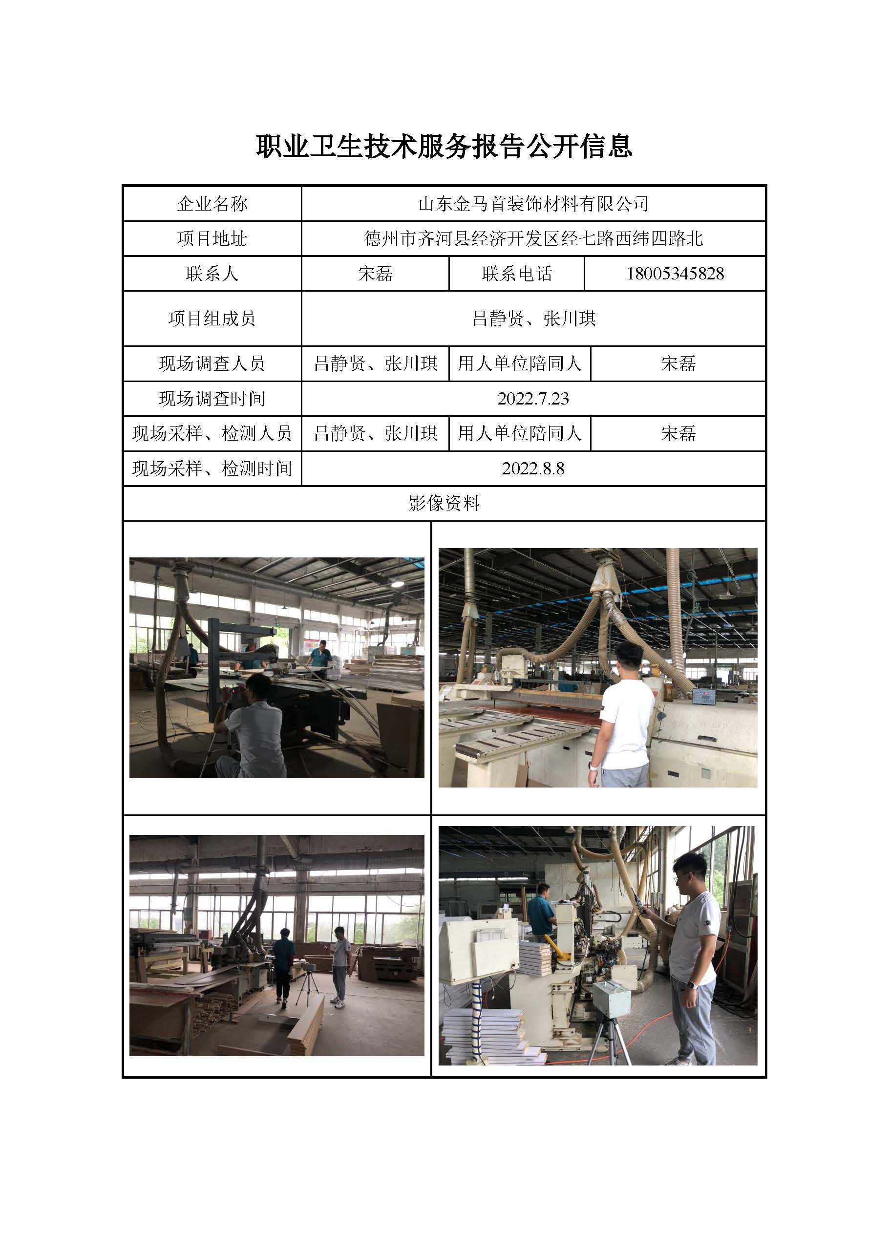 ZBZY22-DQ-059山东金马首装饰材料有限公司 定期检测信息公开