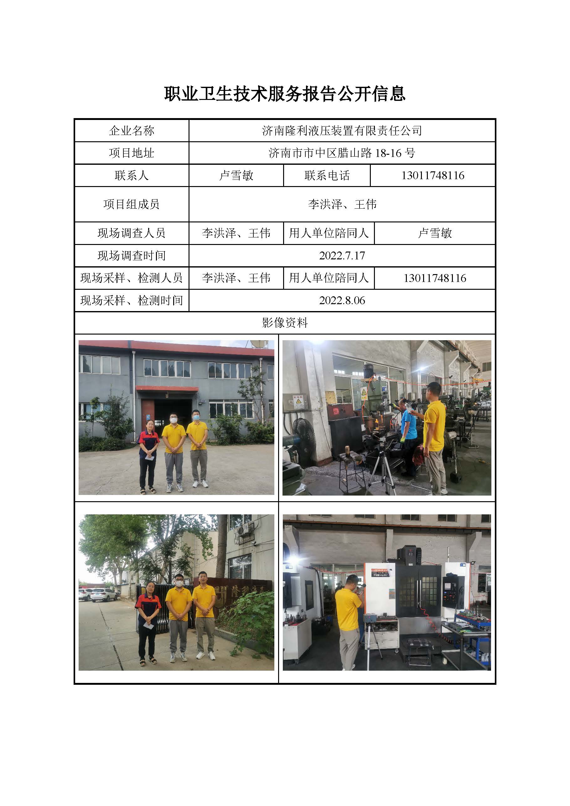 ZBZY22-DQ-061济南隆利液压装置有限责任公司定期检测 信息公开