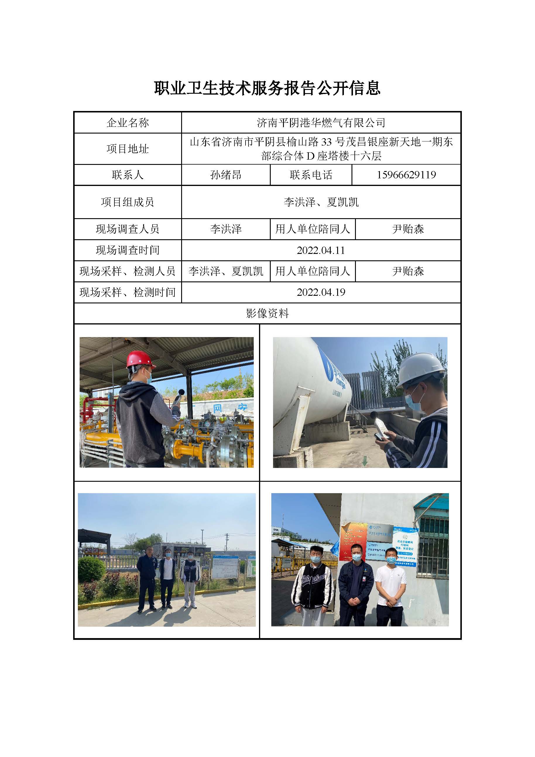 ZBZY22-DQ-014济南平阴港华燃气有限公司 职业卫生技术服务报告公开信息