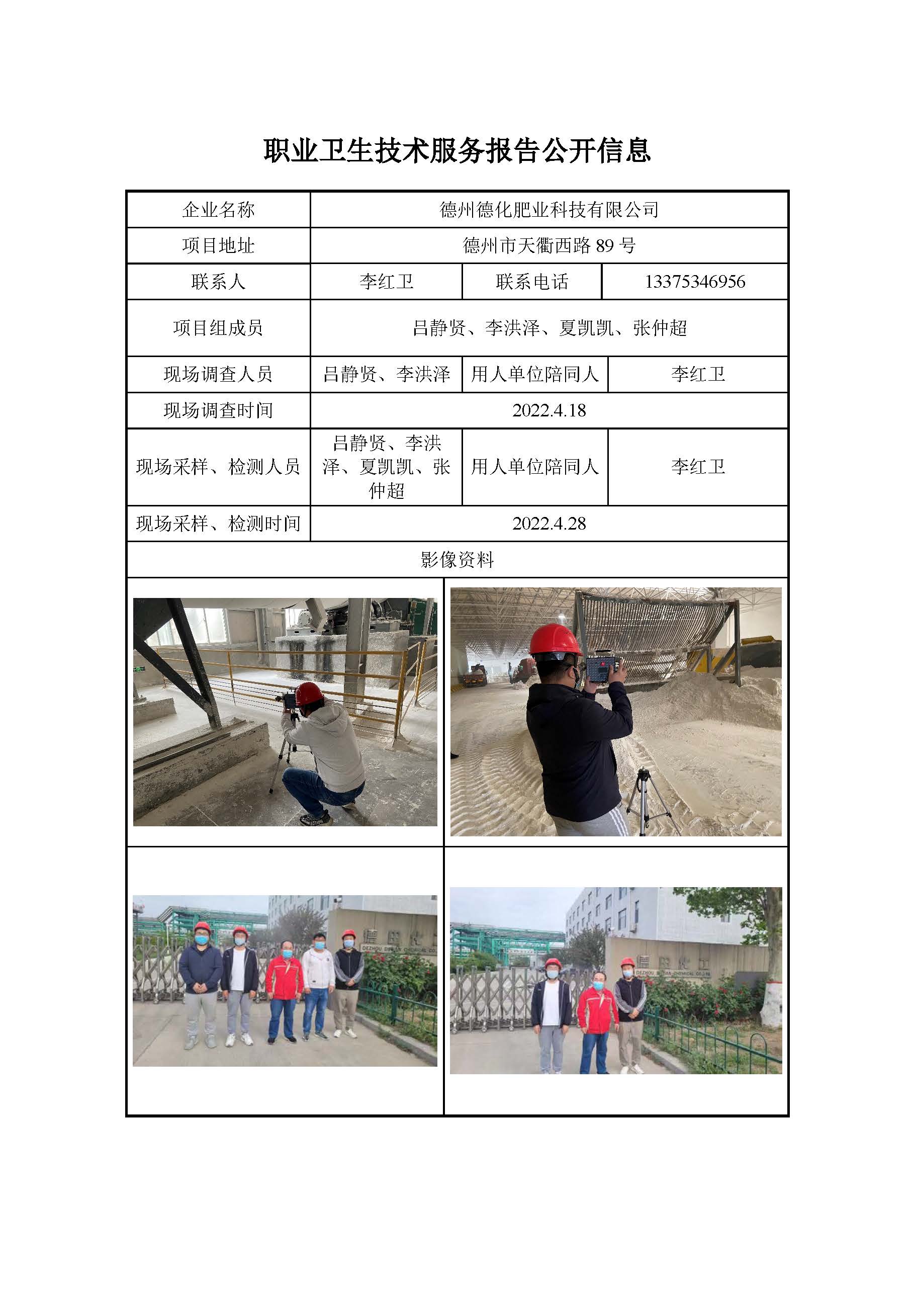 ZBZY22-DQ-024德州德化肥业科技有限公司 职业卫生技术服务报告公开信息