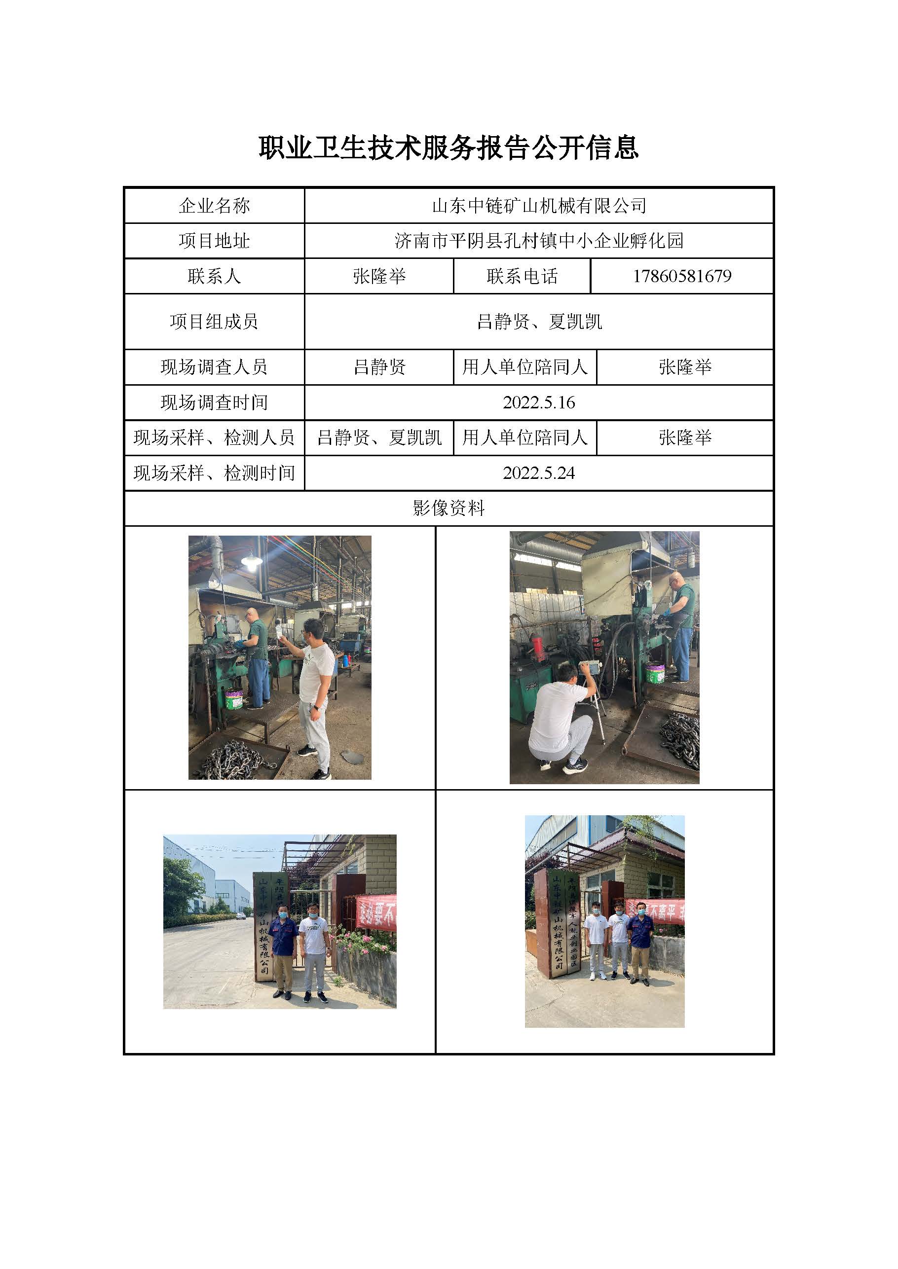 ZBZY22-DQ-025山东中链矿山机械有限公司 职业卫生技术服务报告公开信息