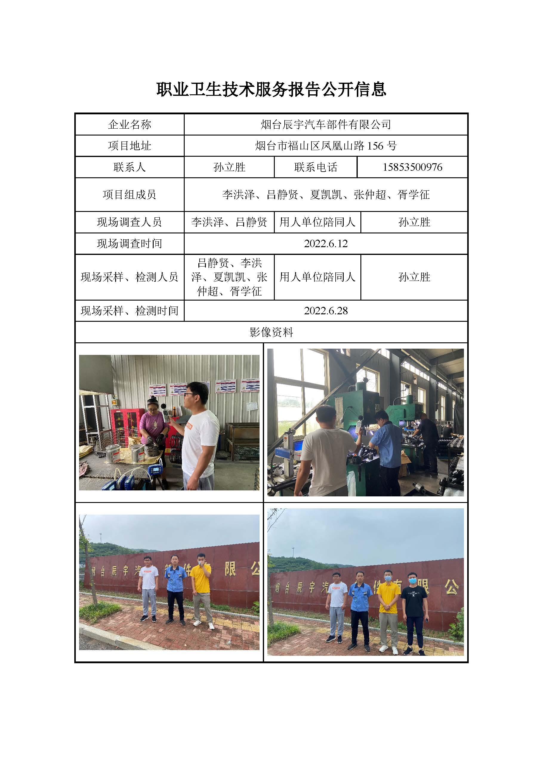 ZBZY22-DQ-038烟台辰宇汽车部件有限公司 职业卫生技术服务报告公开信息