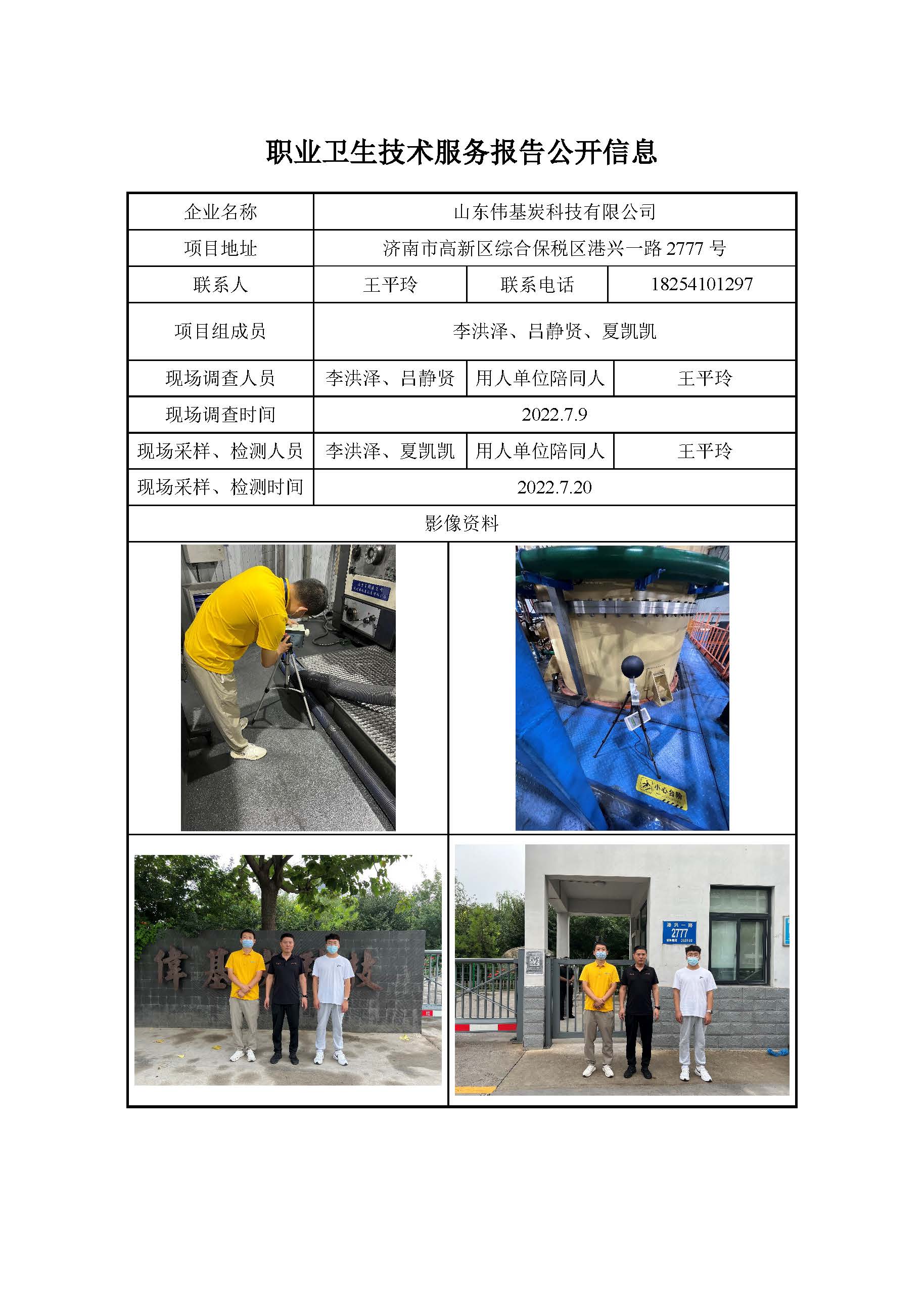 ZBZY22-DQ-047山东伟基炭科技有限公司 职业卫生技术服务报告公开信息