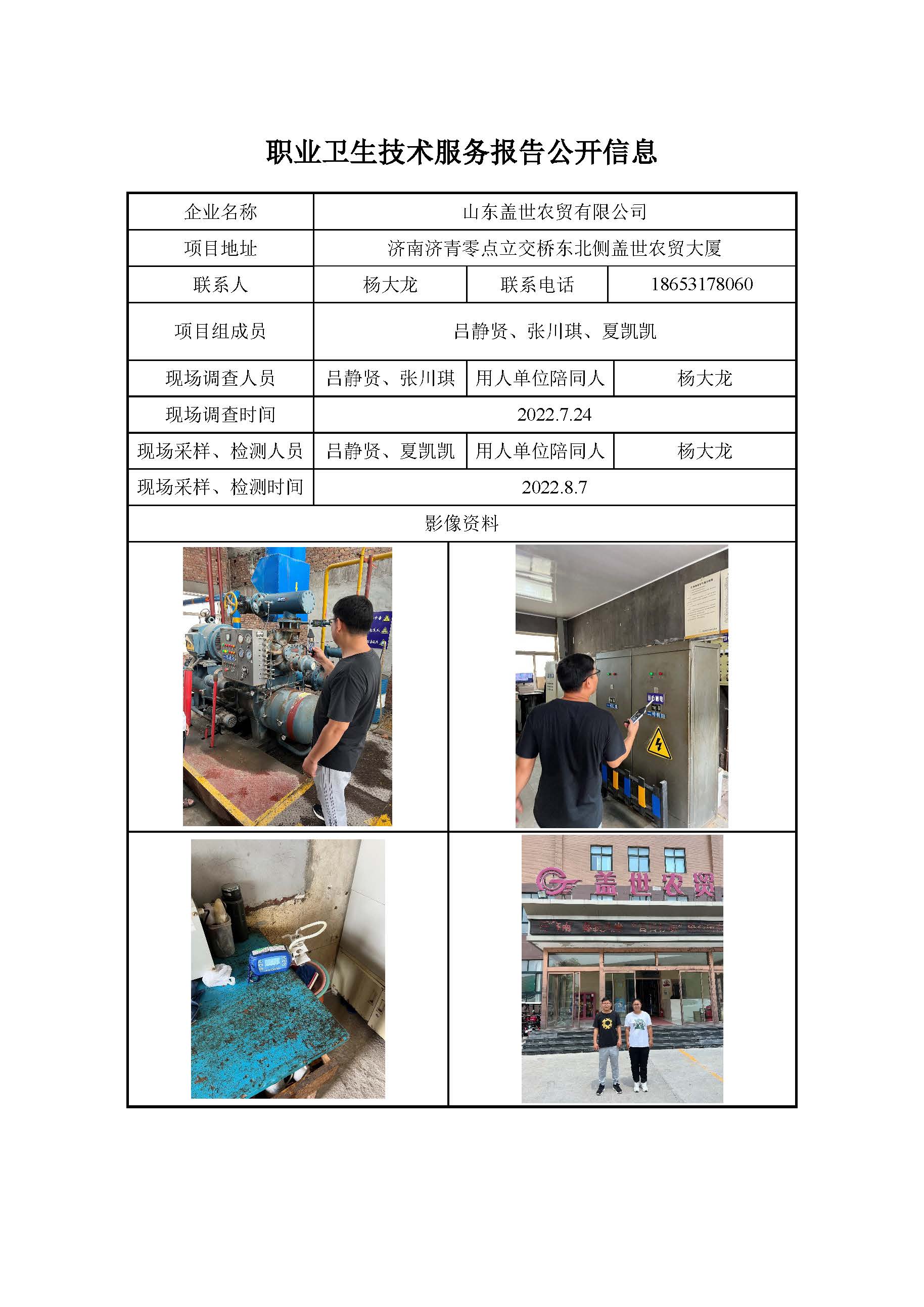 ZBZY22-DQ-052山东盖世农贸有限公司 职业卫生技术服务报告公开信息