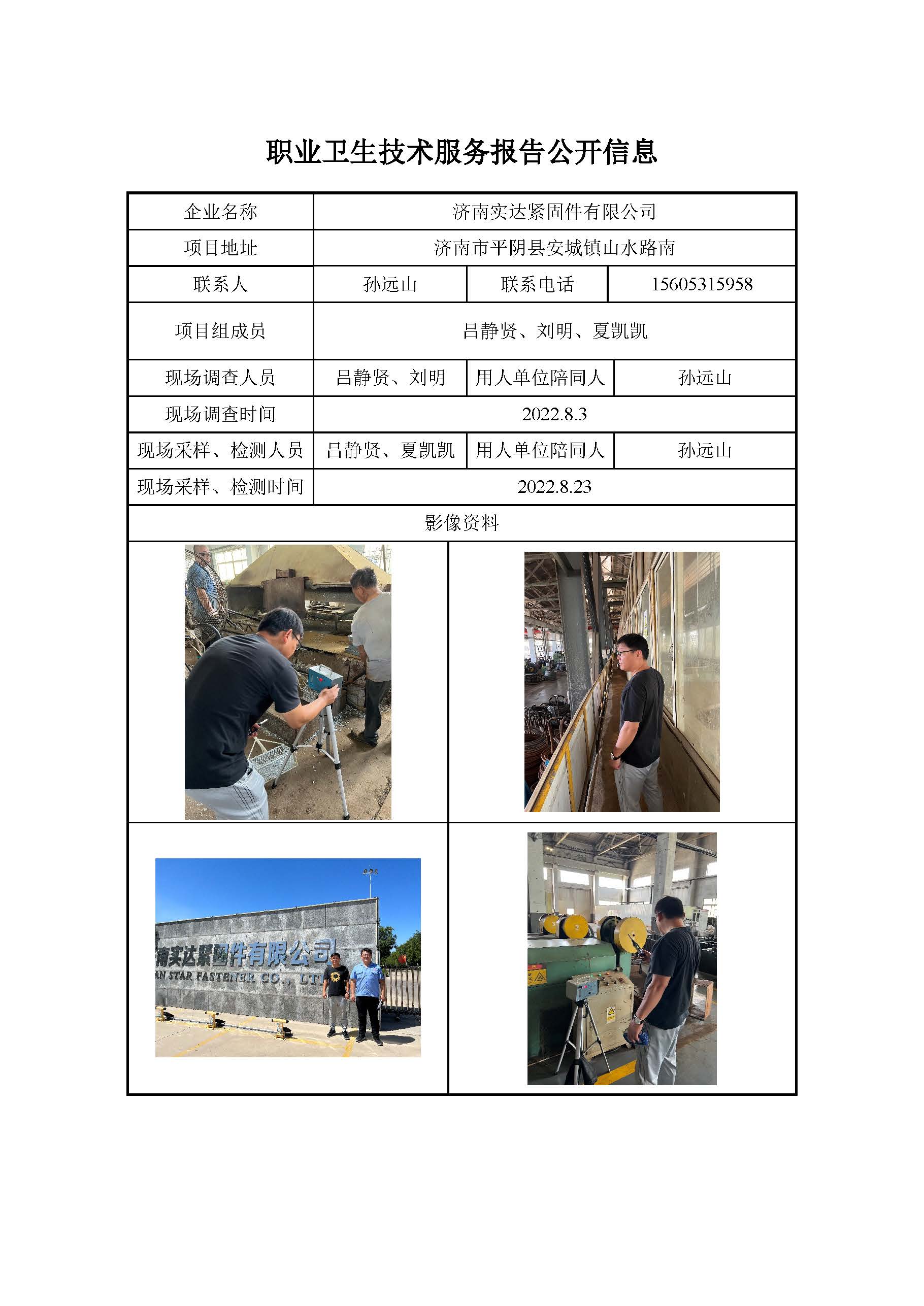 ZBZY22-DQ-067济南实达紧固件有限公司 职业卫生技术服务报告公开信息