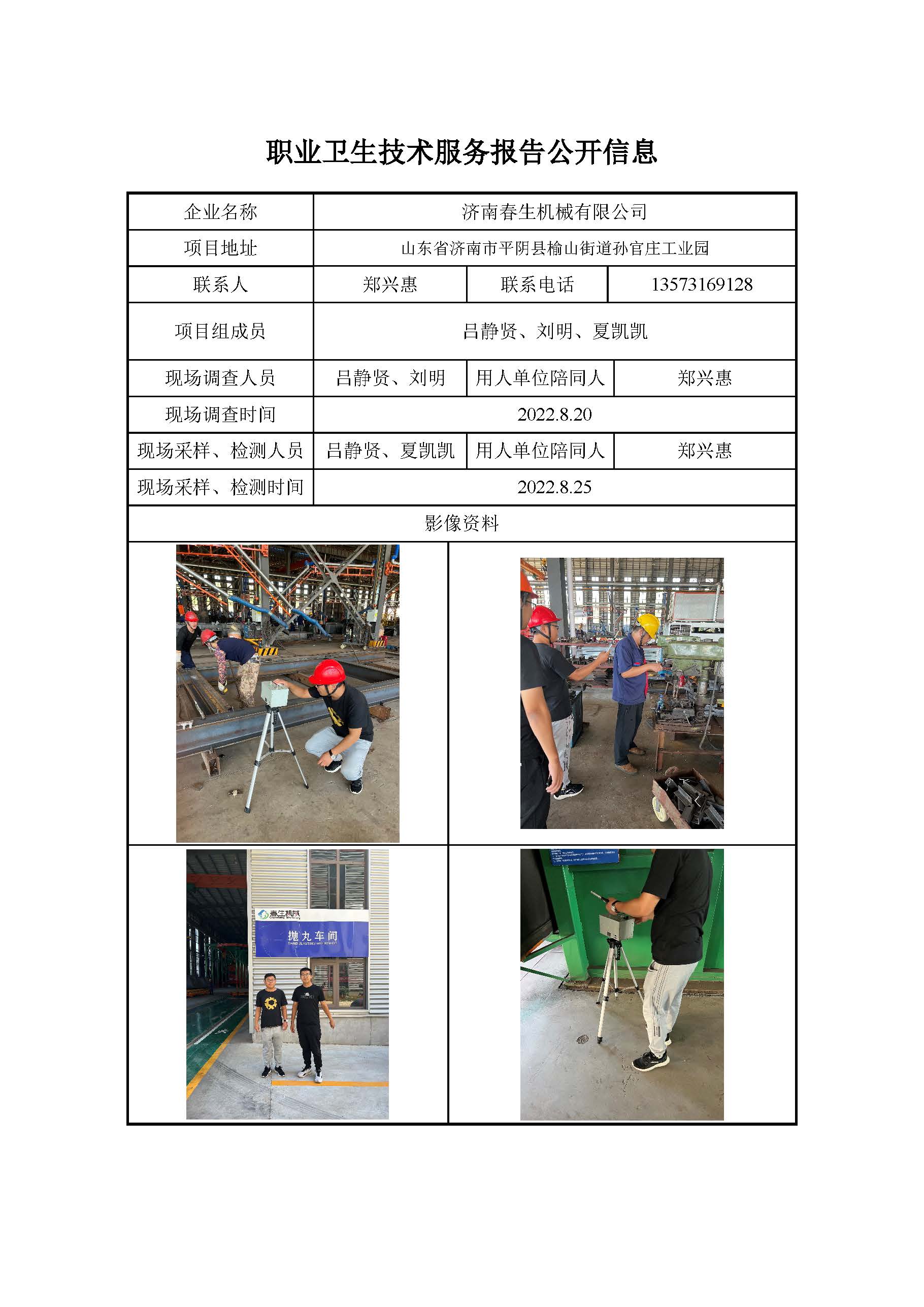 ZBZY22-DQ-074济南春生机械有限公司 职业卫生技术服务报告公开信息