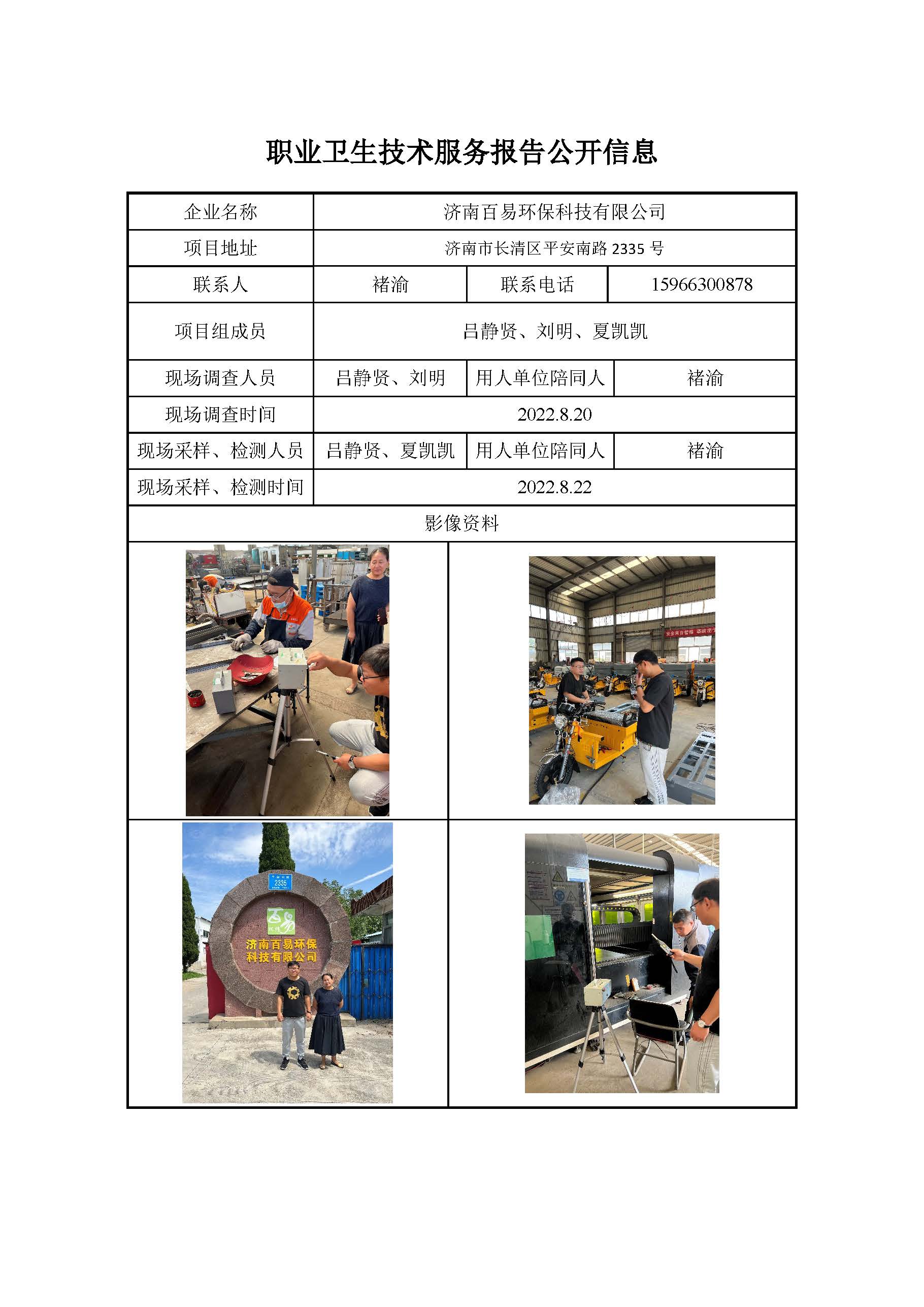 ZBZY22-DQ-078济南百易环保科技有限公司 职业卫生技术服务报告公开信息