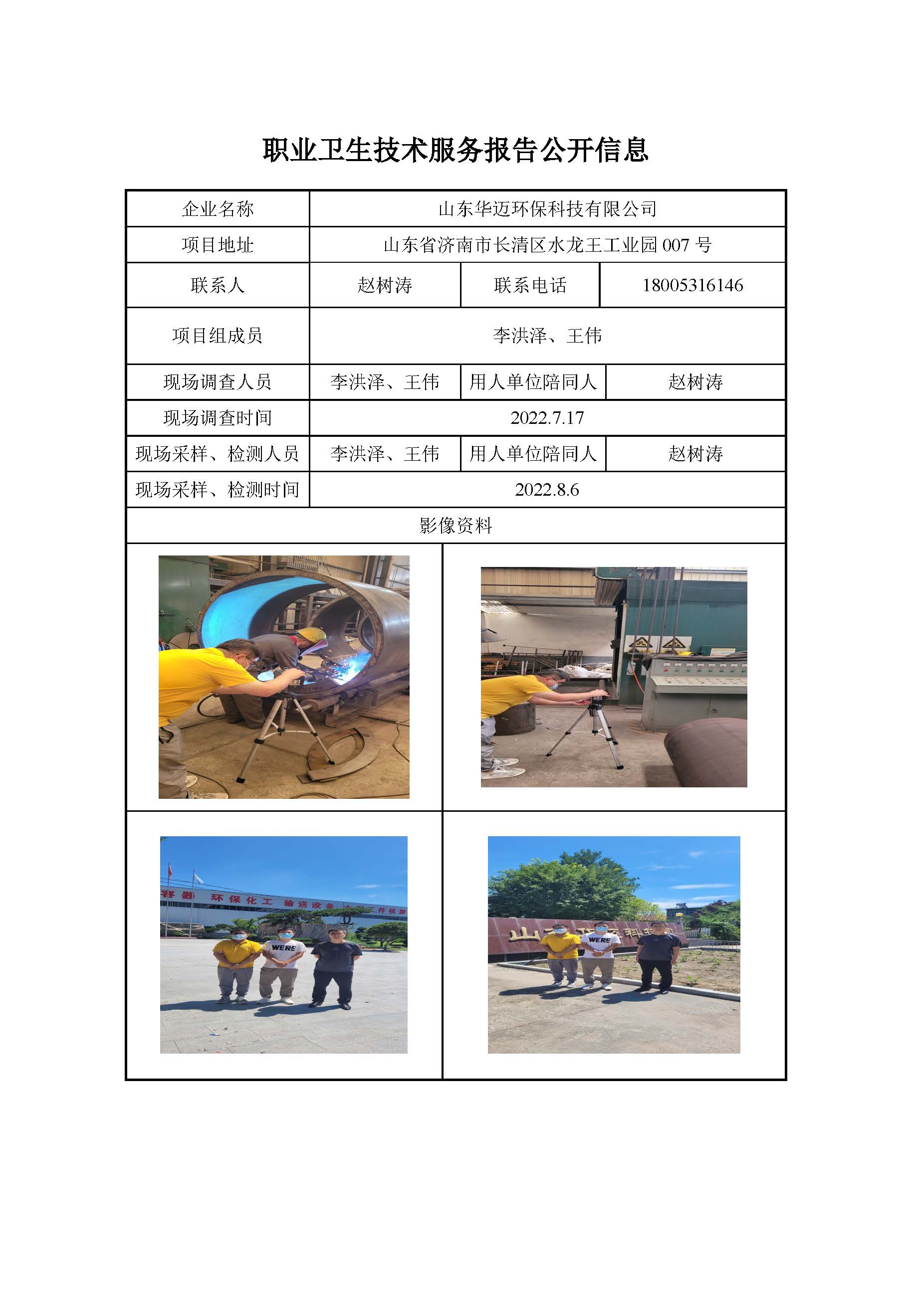 ZBZY22-DQ-060山东华迈环保科技有限公司职业病危害因素定期检测公开信息