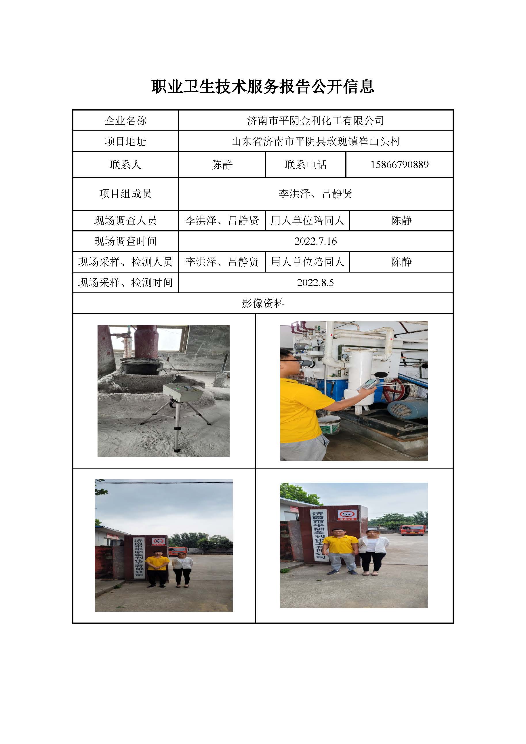 ZBZY22-DQ-066济南市平阴金利化工有限公司职业病危害因素定期检测公开信息