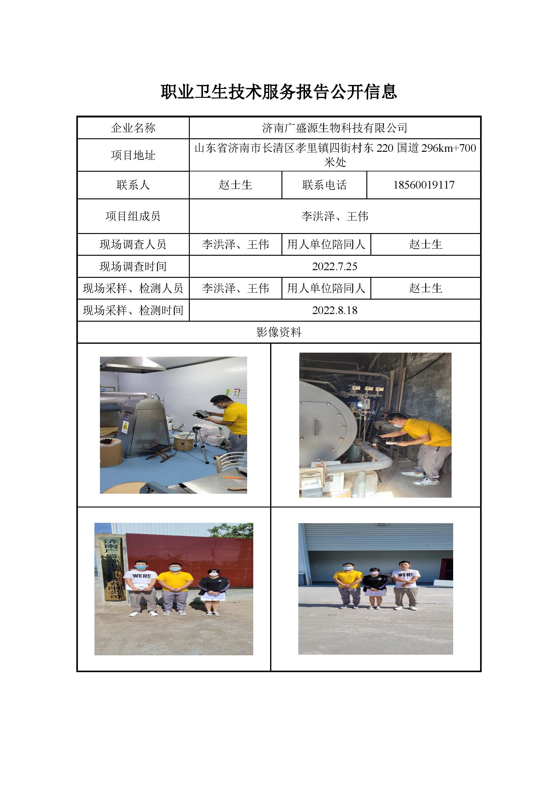 ZBZY22-DQ-075济南广盛源生物科技有限公司职业病危害因素定期检测公开信息