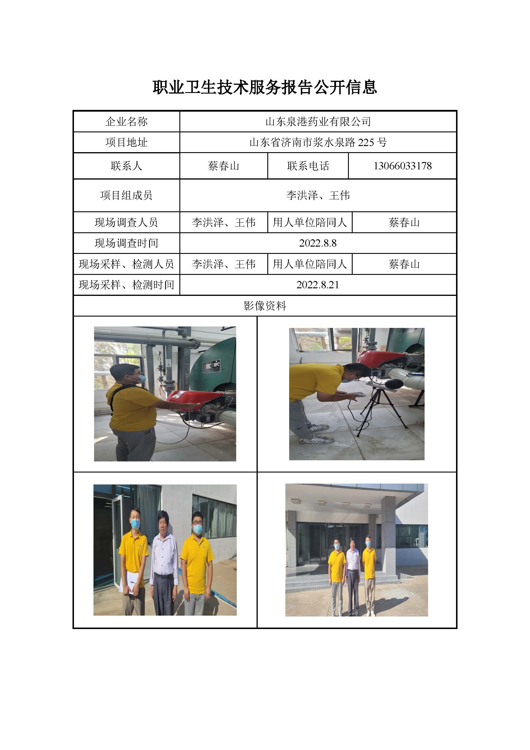 ZBZY22-DQ-084山东泉港药业有限公司职业病危害因素定期检测公开信息