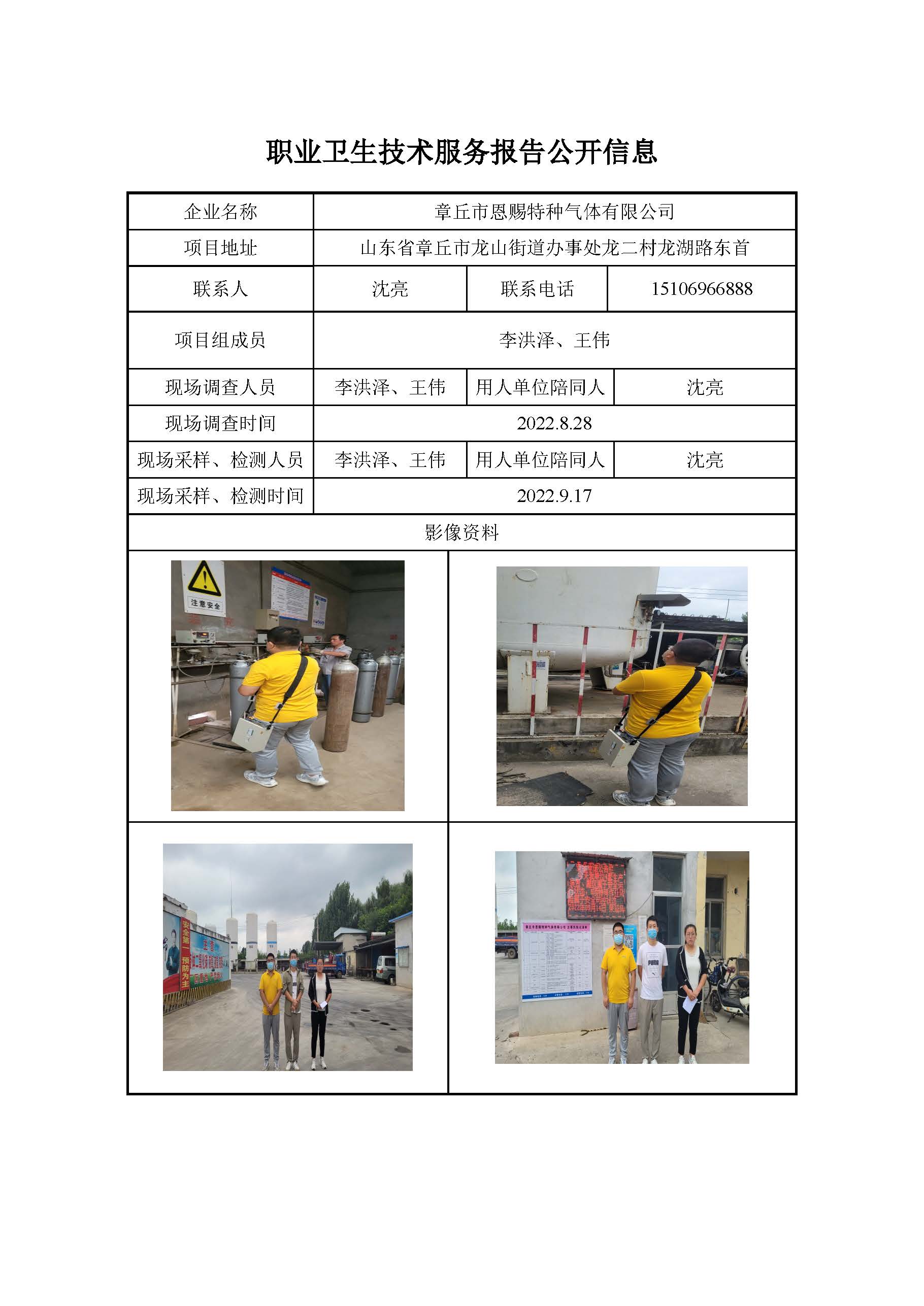 ZBZY22-DQ-092章丘市恩赐特种气体有限公司职业病危害因素定期检测公开信息