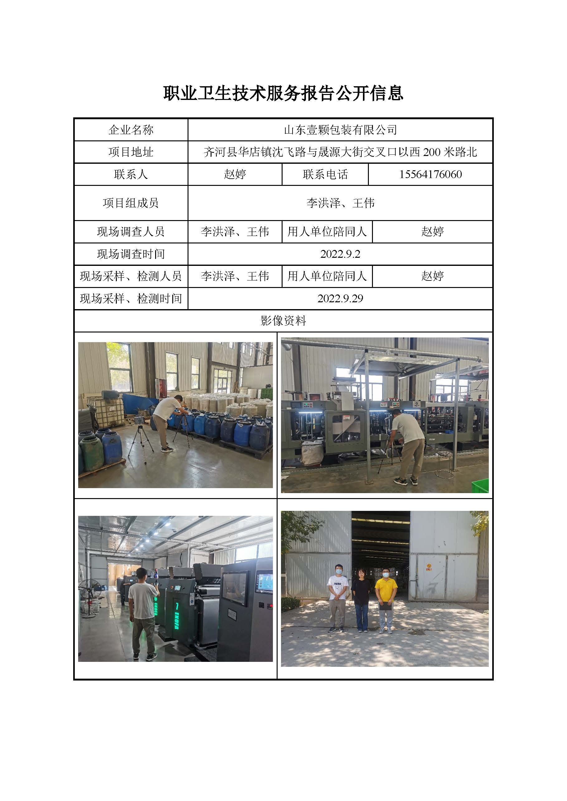 ZBZY22-DQ-094山东壹颗包装有限公司定期检测 信息公开
