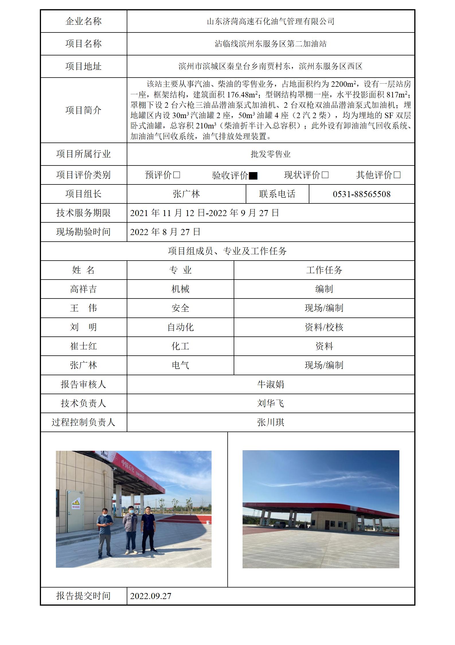 沾临线滨州东服务区第二加油站安全验收评价报告信息公开