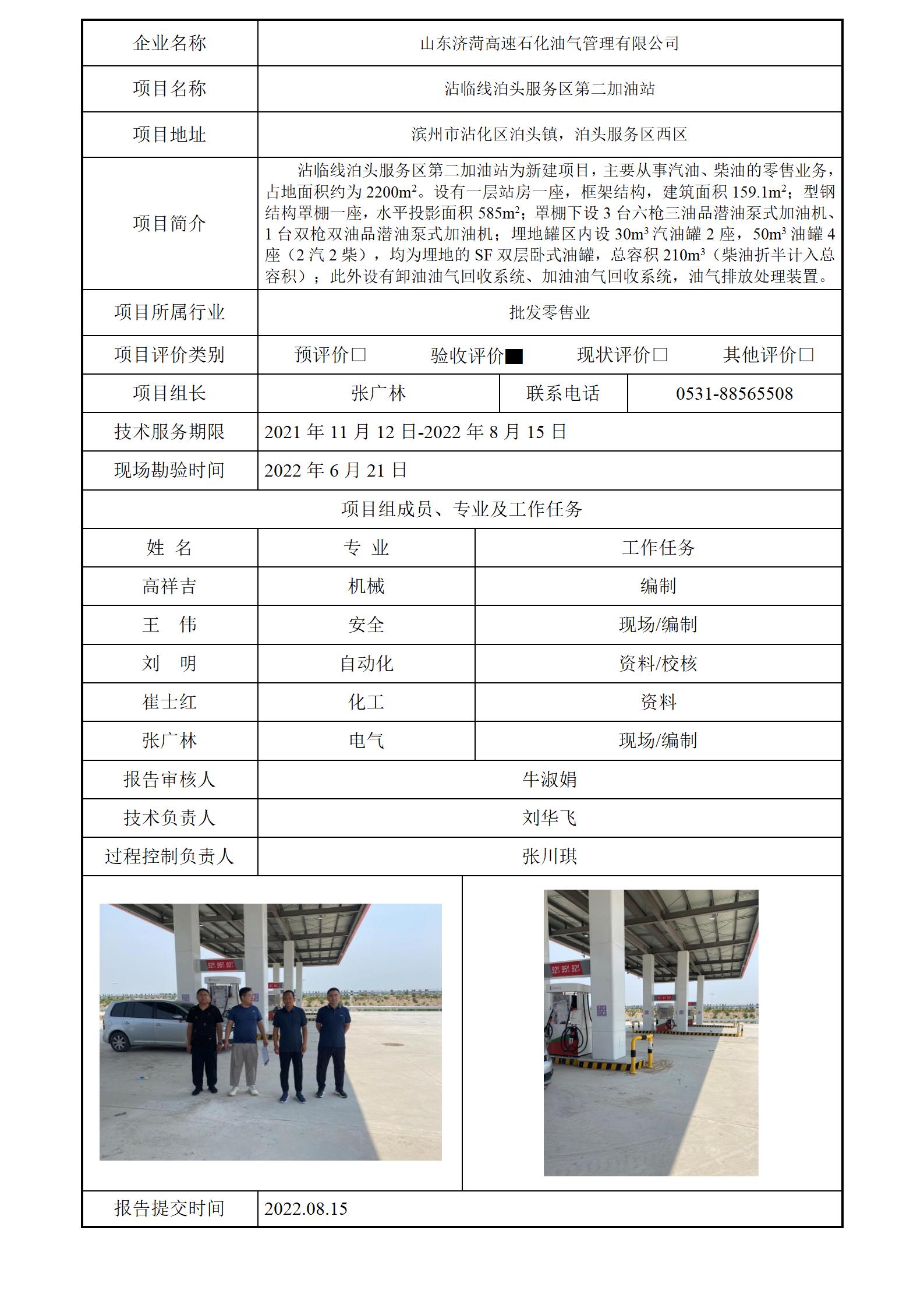 沾临线泊头服务区第二加油站安全验收评价报告信息公开